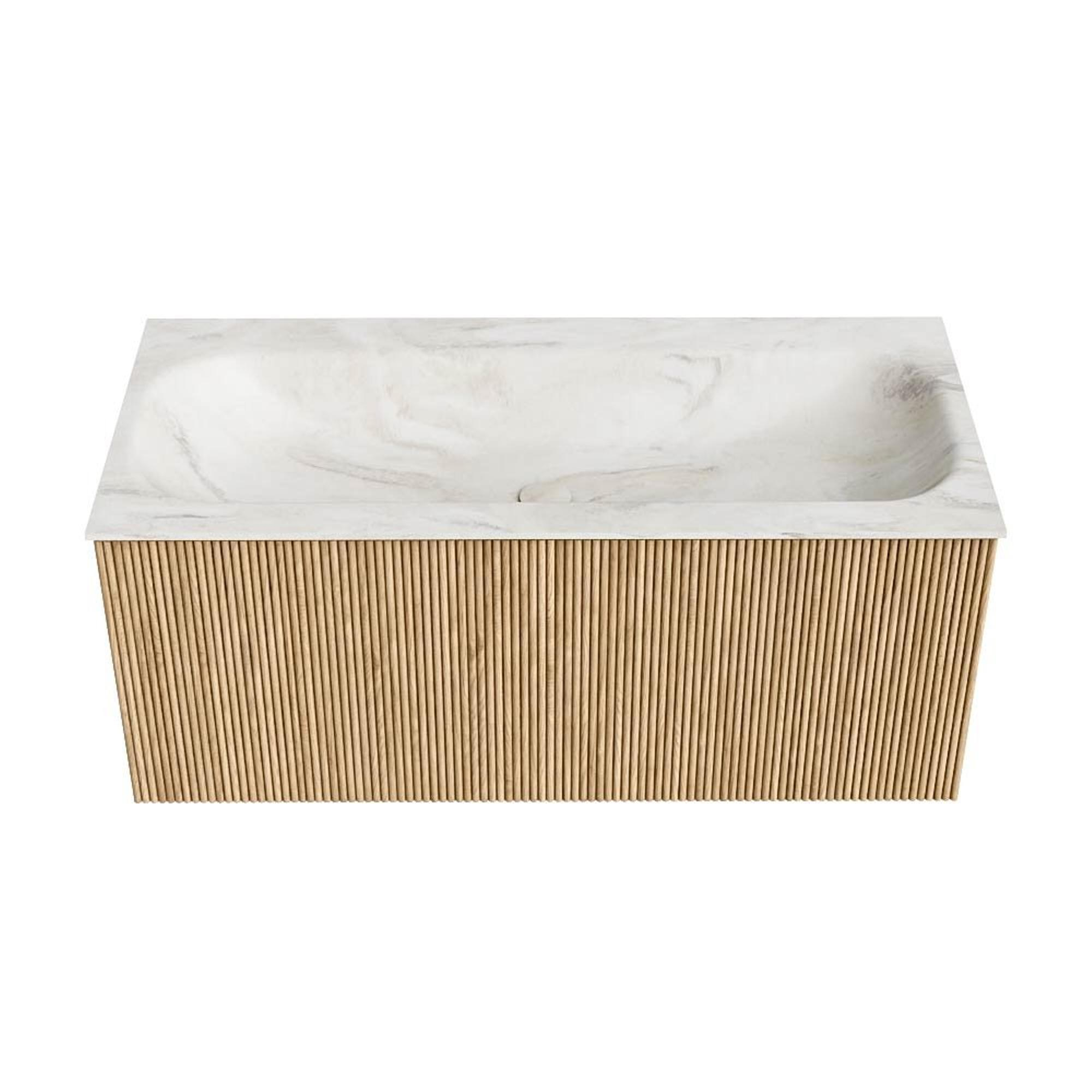 MONDIAZ KURVE-DLUX 100cm badmeubel kleur Oak met 1 lade. Wastafel BIG MEDIUM midden zonder kraangat kleur Ostra.