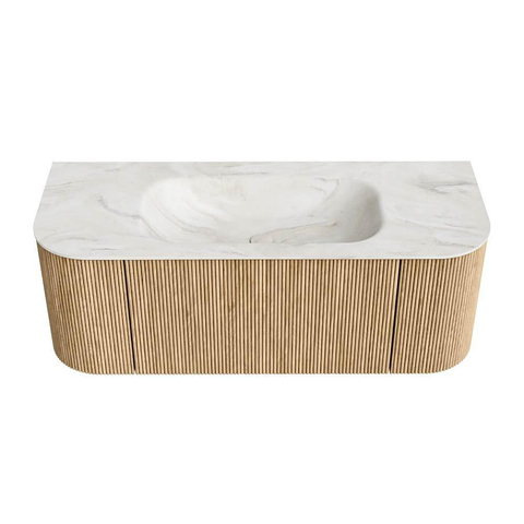 Het ultieme badmeubel dat je badkamer transformeert tot een oase van verfijning. Met zijn halfronde, verticale stroken van massief eiken, verkrijgbaar in de kleuren Oak en Walnut, straalt KURVE vakmanschap uit in elk detail. De zachte rondingen en slim ontworpen deurtjes, elk 40cm hoog, nodigen uit tot gebruik, terwijl de ruimte binnenin optimaal benut wordt dankzij de royale lade van dezelfde hoogte.