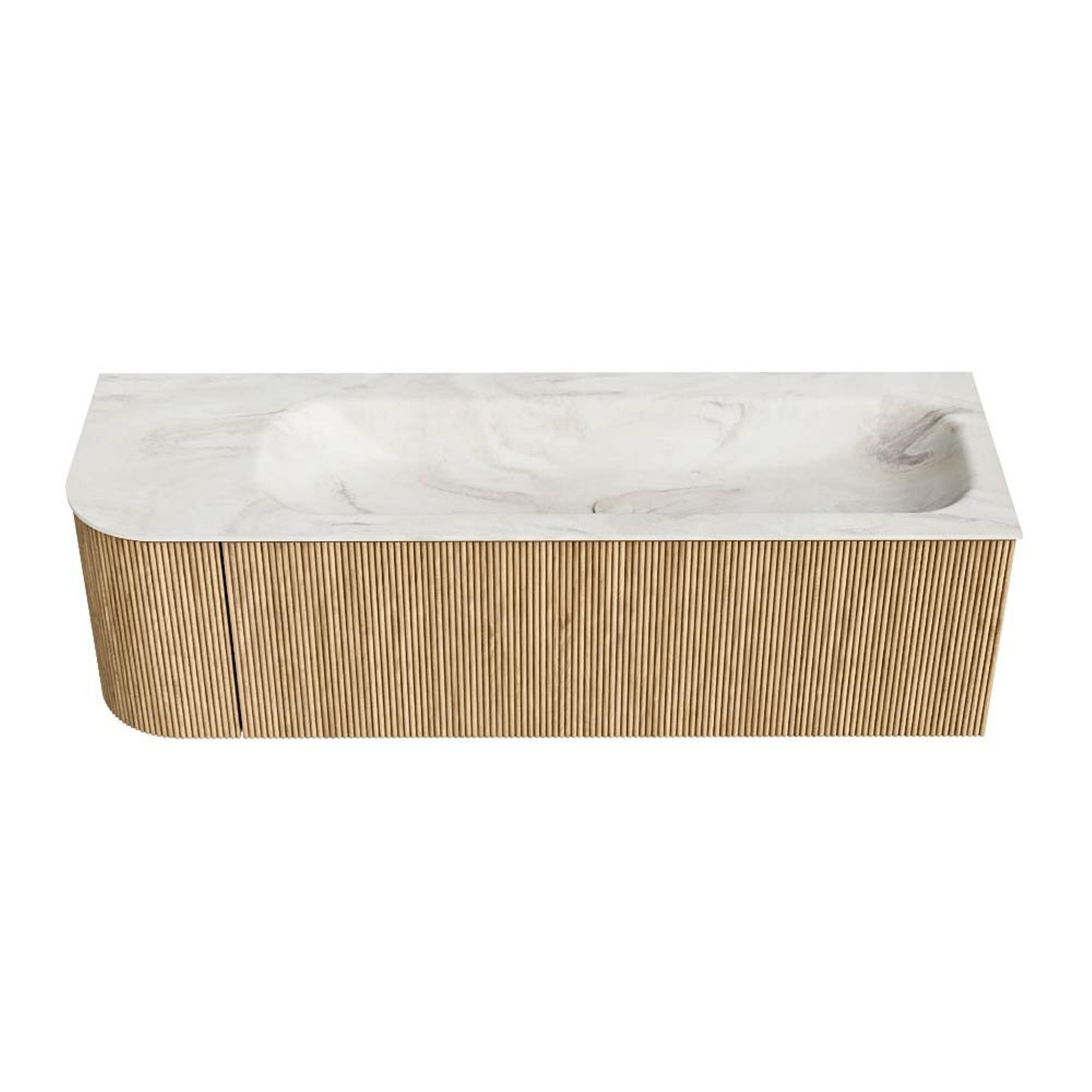 MONDIAZ KURVE-DLUX 145cm badmeubel met module 25 L kleur Oak met 1 lade en 1 deur. Wastafel BIG LARGE rechts 1 kraangat kleur Ostra.