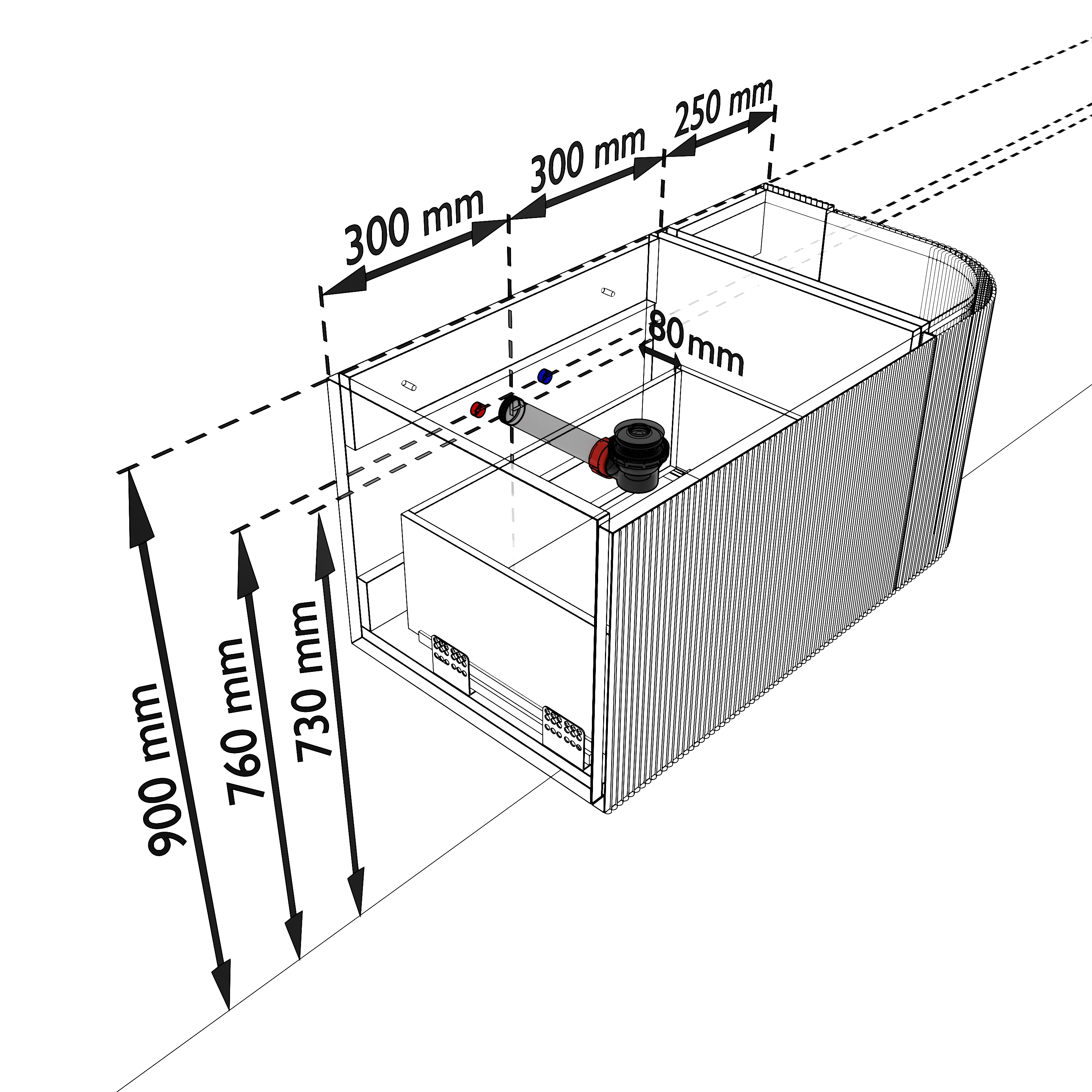 - Geen water langs het meubel loopt.