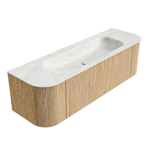Het ultieme badmeubel dat je badkamer transformeert tot een oase van verfijning. Met zijn halfronde, verticale stroken van massief eiken, verkrijgbaar in de kleuren Oak en Walnut, straalt KURVE vakmanschap uit in elk detail. De zachte rondingen en slim ontworpen deurtjes, elk 40cm hoog, nodigen uit tot gebruik, terwijl de ruimte binnenin optimaal benut wordt dankzij de royale lade van dezelfde hoogte.