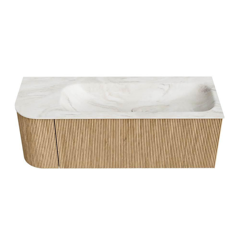 MONDIAZ KURVE-DLUX 125cm badmeubel met module 25 L kleur Oak met 1 lade en 1 deur. Wastafel BIG MEDIUM rechts zonder kraangat kleur Ostra.
