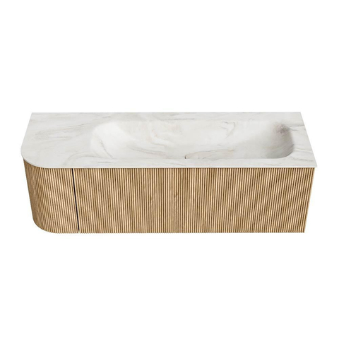 MONDIAZ KURVE-DLUX 135cm badmeubel met module 25 L kleur Oak met 1 lade en 1 deur. Wastafel BIG MEDIUM rechts 1 kraangat kleur Ostra.