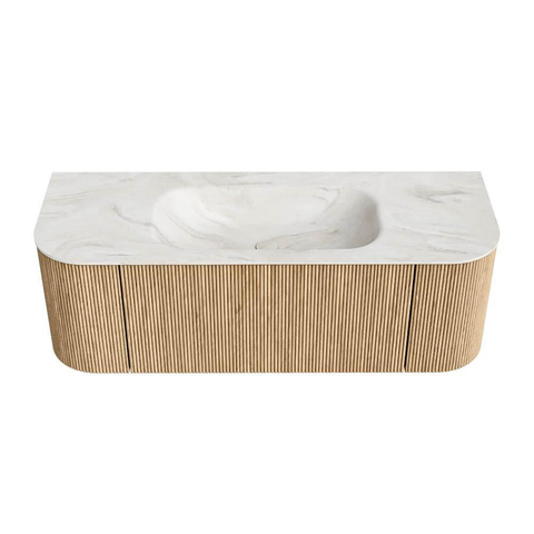 Het ultieme badmeubel dat je badkamer transformeert tot een oase van verfijning. Met zijn halfronde, verticale stroken van massief eiken, verkrijgbaar in de kleuren Oak en Walnut, straalt KURVE vakmanschap uit in elk detail. De zachte rondingen en slim ontworpen deurtjes, elk 40cm hoog, nodigen uit tot gebruik, terwijl de ruimte binnenin optimaal benut wordt dankzij de royale lade van dezelfde hoogte.
