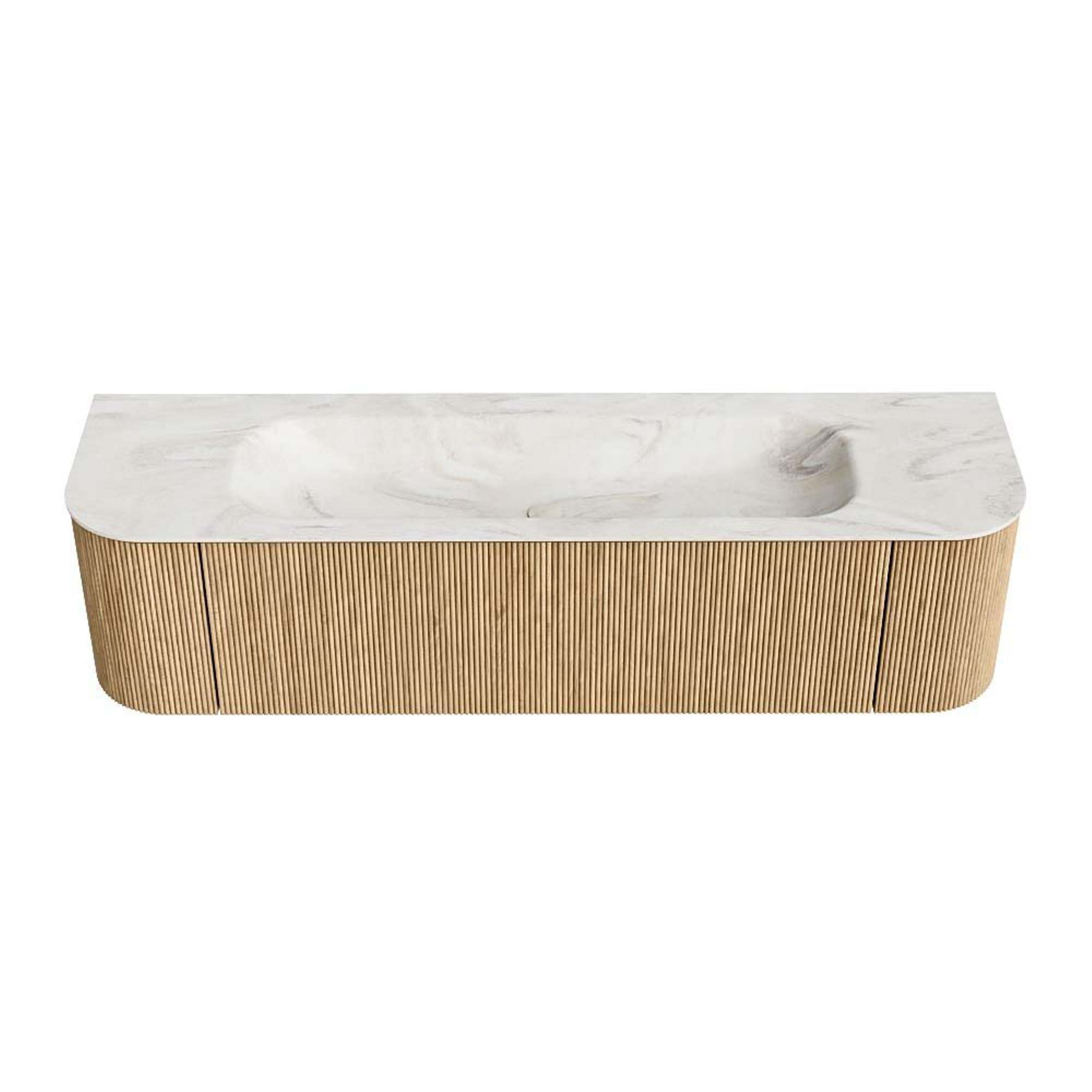 MONDIAZ KURVE-DLUX 170cm badmeubel met module 25 Len R kleur Oak met 1 lade en 2 deuren. Wastafel BIG LARGE midden 1 kraangat kleur Ostra.