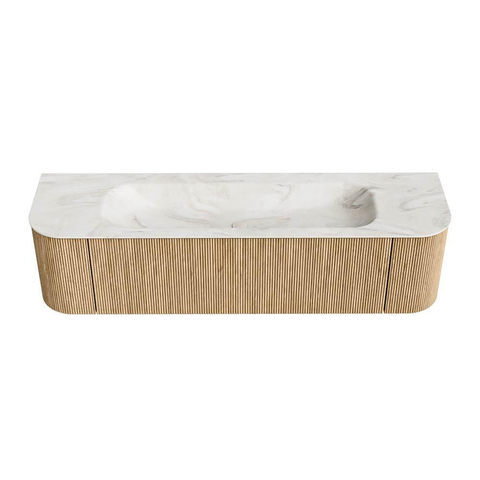 MONDIAZ KURVE-DLUX 170cm badmeubel met module 25 Len R kleur Oak met 1 lade en 2 deuren. Wastafel BIG LARGE midden 2 kraangaten kleur Ostra.