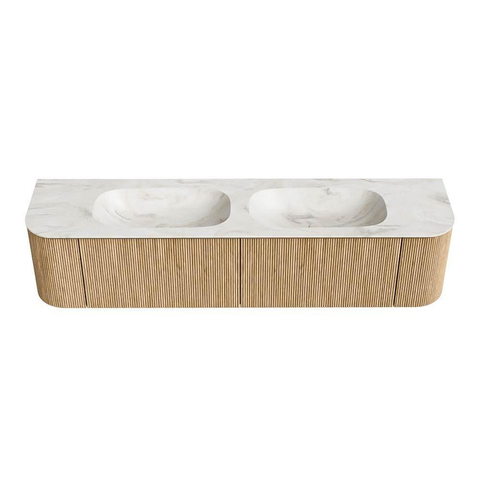 Het ultieme badmeubel dat je badkamer transformeert tot een oase van verfijning. Met zijn halfronde, verticale stroken van massief eiken, verkrijgbaar in de kleuren Oak en Walnut, straalt KURVE vakmanschap uit in elk detail. De zachte rondingen en slim ontworpen deurtjes, elk 40cm hoog, nodigen uit tot gebruik, terwijl de ruimte binnenin optimaal benut wordt dankzij de royale lade van dezelfde hoogte.