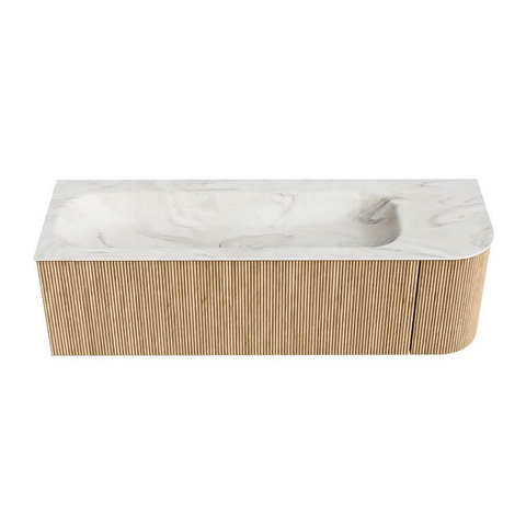 MONDIAZ KURVE-DLUX 145cm badmeubel met module 25 R kleur Oak met 1 lade en 1 deur. Wastafel BIG LARGE links 1 kraangat kleur Ostra.