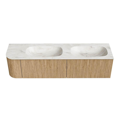 Het ultieme badmeubel dat je badkamer transformeert tot een oase van verfijning. Met zijn halfronde, verticale stroken van massief eiken, verkrijgbaar in de kleuren Oak en Walnut, straalt KURVE vakmanschap uit in elk detail. De zachte rondingen en slim ontworpen deurtjes, elk 40cm hoog, nodigen uit tot gebruik, terwijl de ruimte binnenin optimaal benut wordt dankzij de royale lade van dezelfde hoogte.
