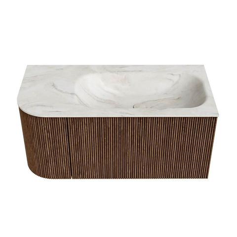 MONDIAZ KURVE-DLUX 95cm badmeubel met module 25 L kleur Walnut met 1 lade en 1 deur. Wastafel BIG SMALL rechts 1 kraangat kleur Ostra.