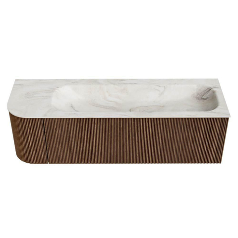 MONDIAZ KURVE-DLUX 145cm badmeubel met module 25 L kleur Walnut met 1 lade en 1 deur. Wastafel BIG LARGE rechts zonder kraangat kleur Ostra.