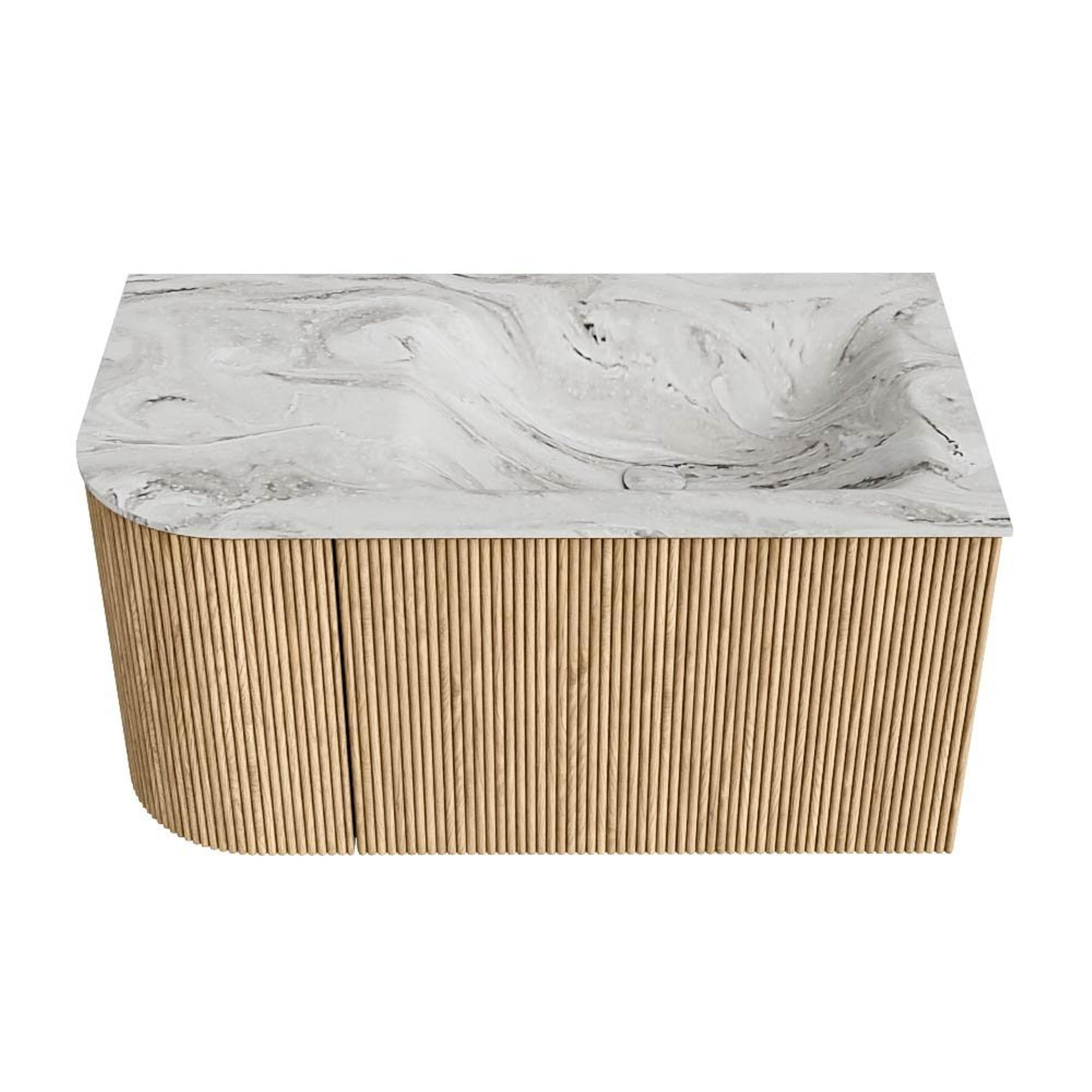 MONDIAZ KURVE-DLUX 85cm badmeubel met module 25 L kleur Oak met 1 lade en 1 deur. Wastafel CLOUD rechts zonder kraangat kleur Glace.