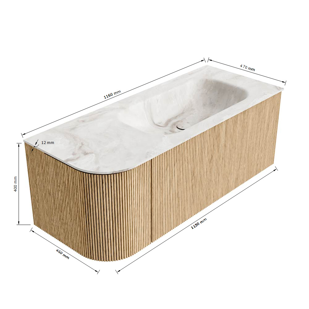Personaliseer jouw KURVE met verschillende opties: Van een strak design zonder rondingen tot beide afgeronde hoeken, precies zoals jij het wilt. Beschikbaar in diverse maten, van 50cm tot 20cm, als set of op maat gemaakt voor jouw badkamer. Maak een statement met hoogwaardige wastafels in 5 CORIAN Solid Surface marmerkleuren en effen tinten zoals Talc en Urban. De set heeft ook meerdere modellen wastafels, elk met een unieke uitstraling en hoogwaardige afwerking, en laat KURVE jouw perfecte badkamer tot leven brengen.