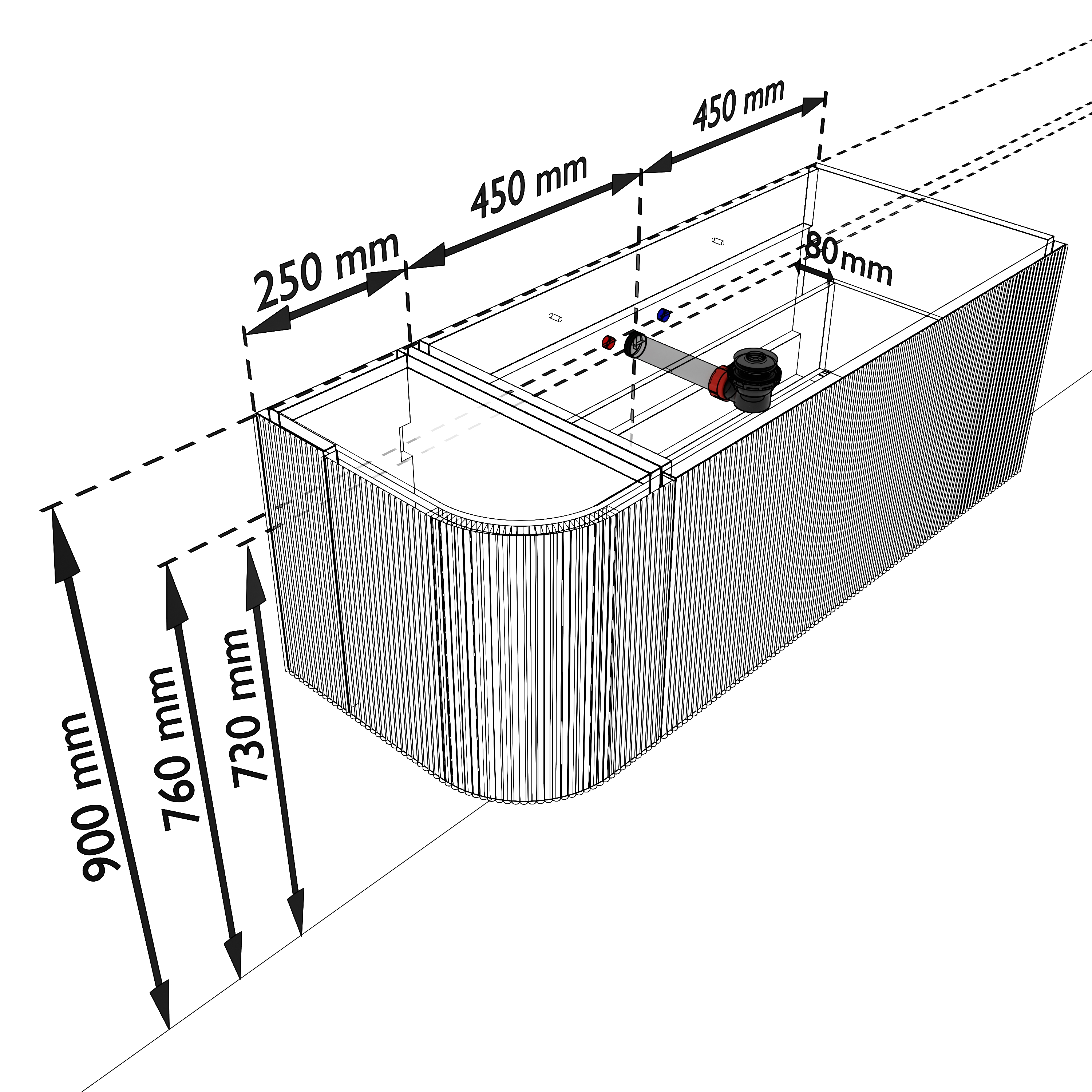 - Geen water langs het meubel loopt.