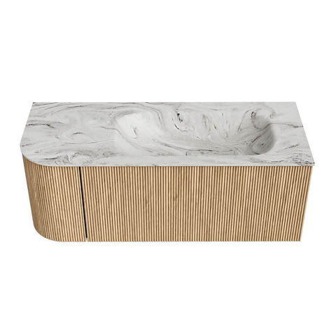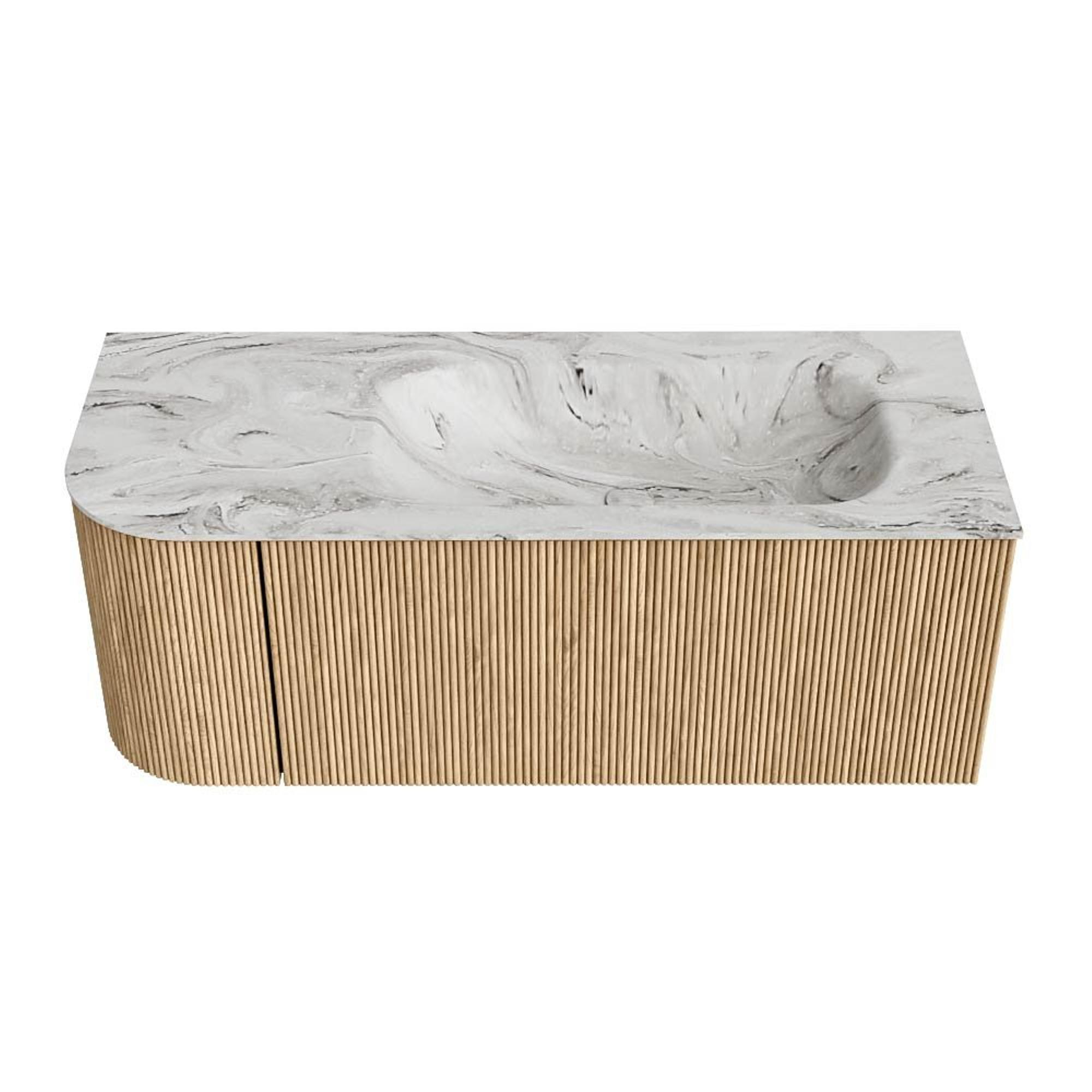 MONDIAZ KURVE-DLUX 115cm badmeubel met module 25 L kleur Oak met 1 lade en 1 deur. Wastafel BIG SMALL rechts zonder kraangat kleur Glace.