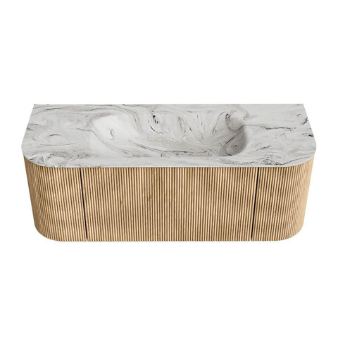 MONDIAZ KURVE-DLUX 120cm badmeubel met module 25 Len R kleur Oak met 1 lade en 2 deuren. Wastafel BIG SMALL midden 1 kraangat kleur Glace.