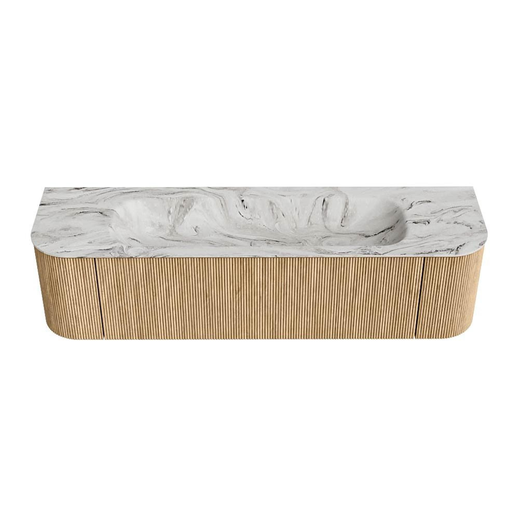MONDIAZ KURVE-DLUX 170cm badmeubel met module 25 Len R kleur Oak met 1 lade en 2 deuren. Wastafel BIG LARGE midden 1 kraangat kleur Glace.