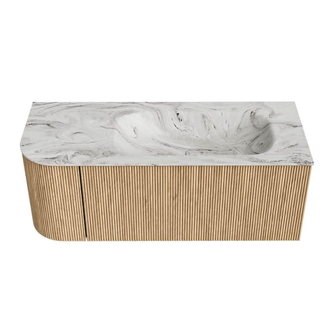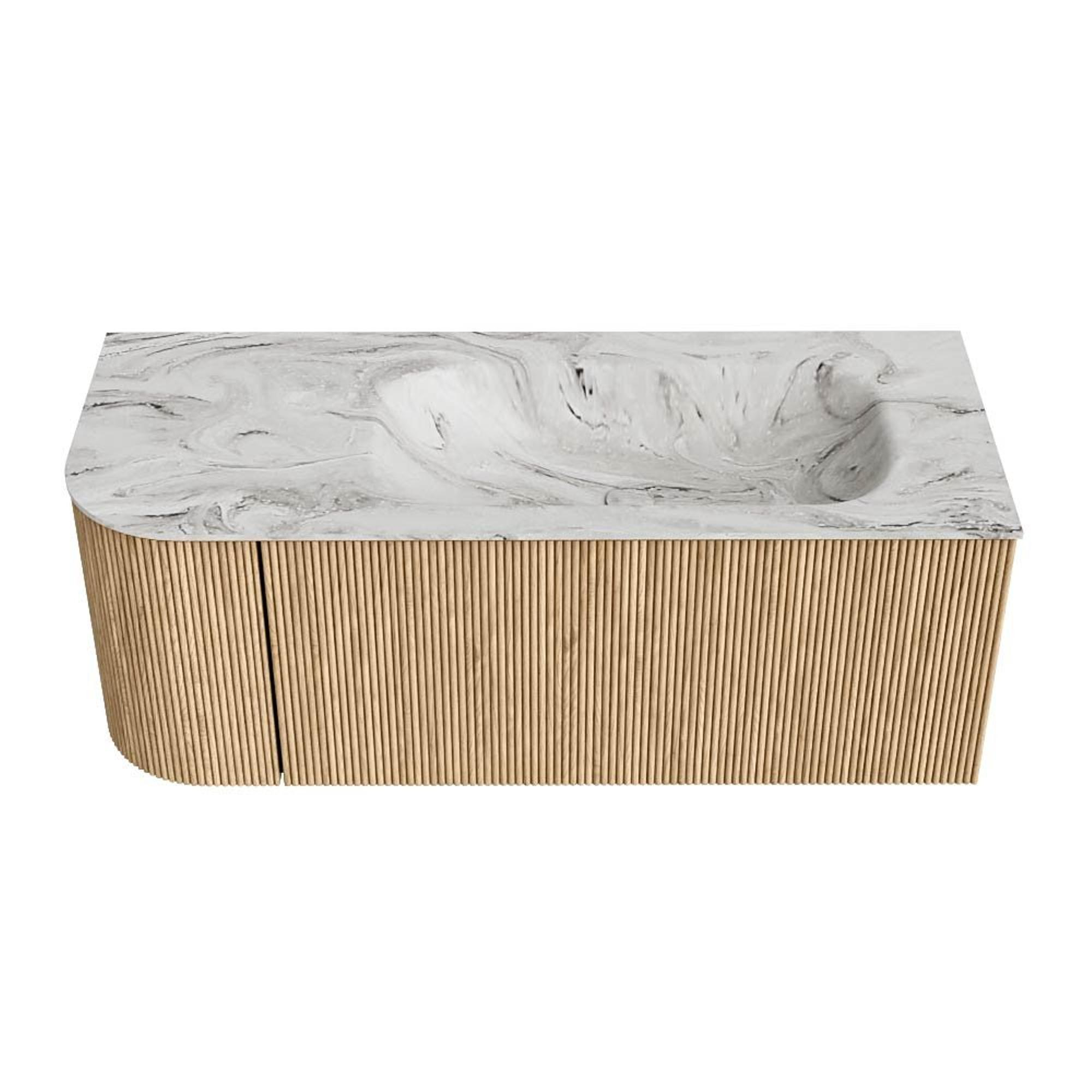 MONDIAZ KURVE-DLUX 115cm badmeubel met module 25 L kleur Oak met 1 lade en 1 deur. Wastafel BIG SMALL rechts 1 kraangat kleur Glace.
