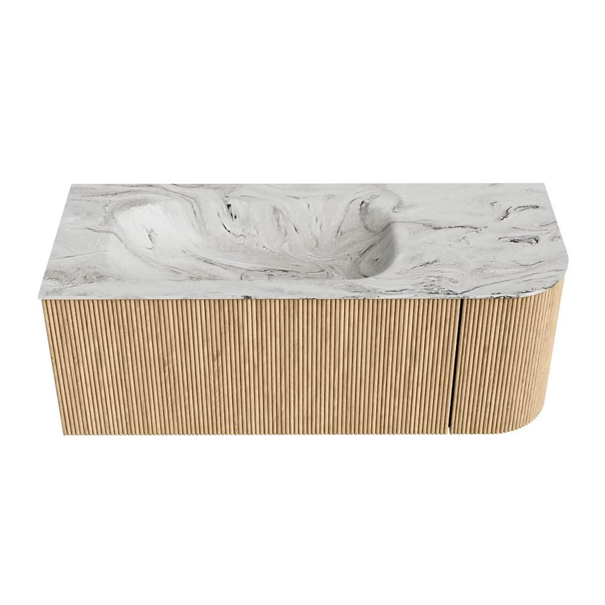 MONDIAZ KURVE-DLUX 115cm badmeubel met module 25 R kleur Oak met 1 lade en 1 deur. Wastafel BIG SMALL links zonder kraangat kleur Glace.