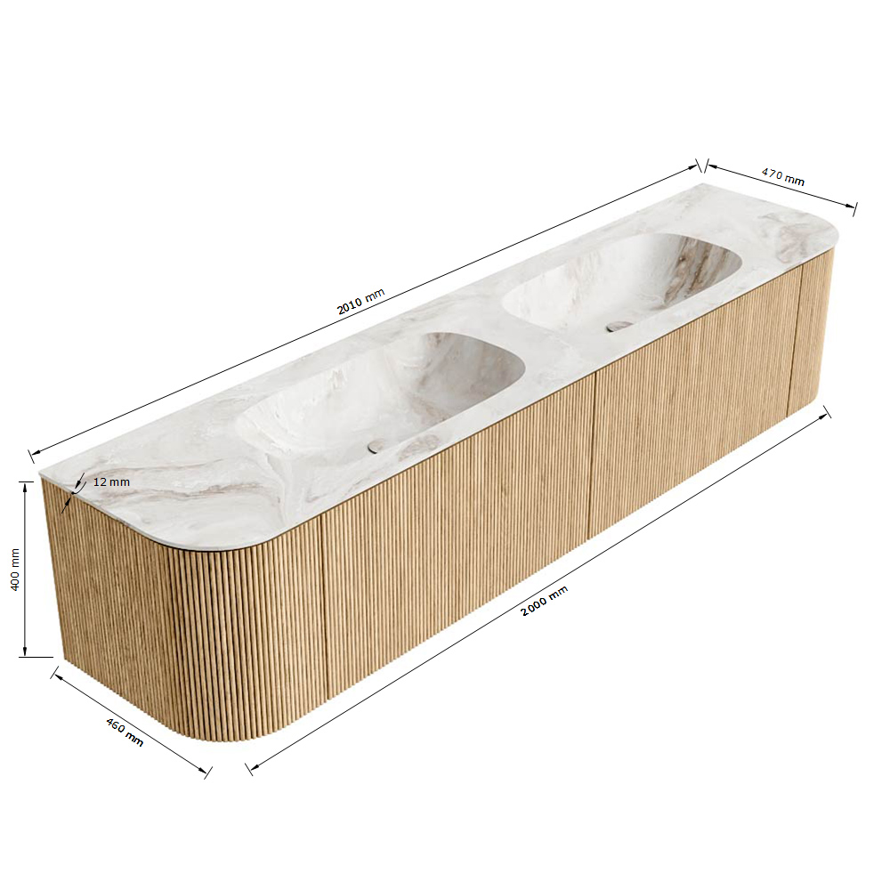 - Breedte wastafel: 201cm