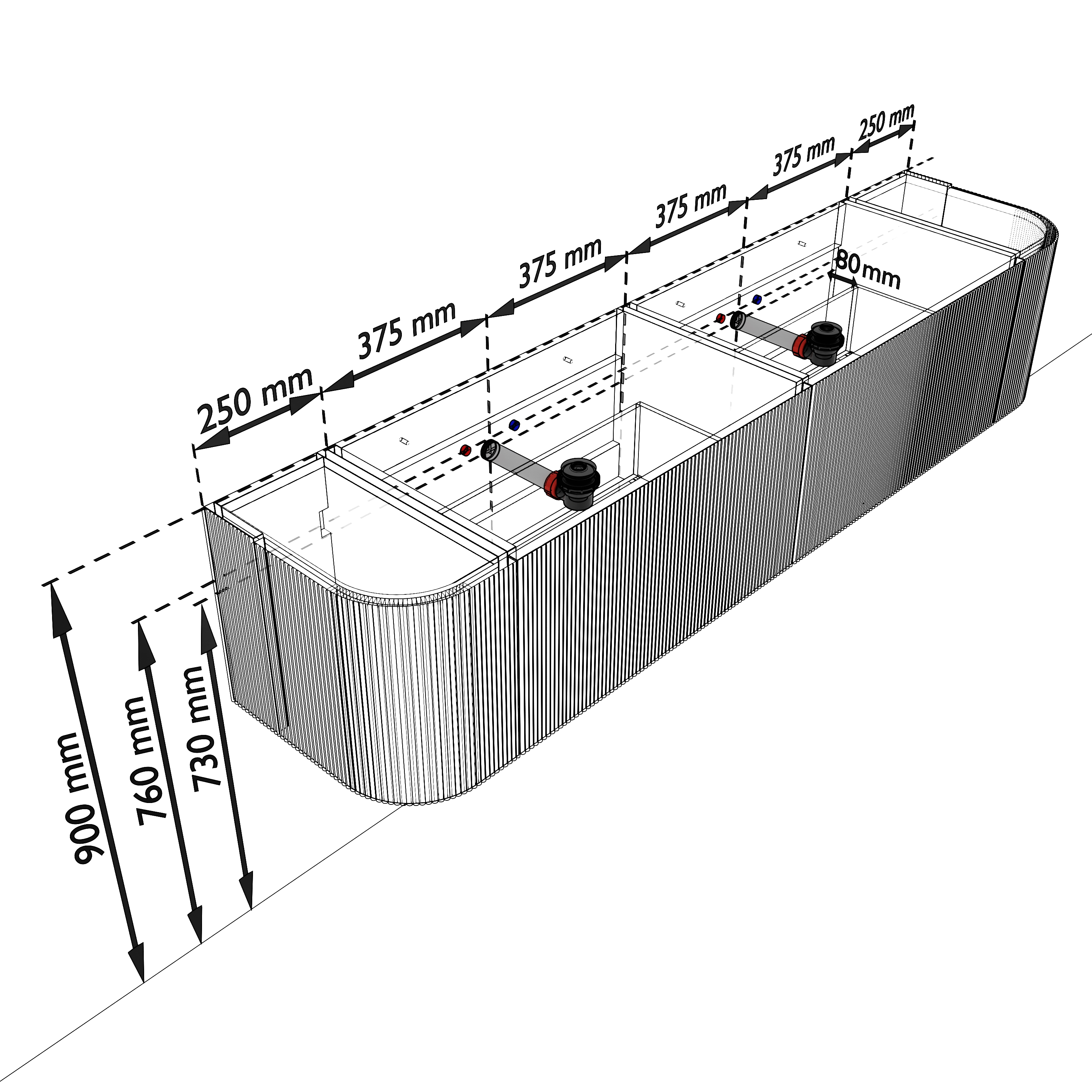 - Geen water langs het meubel loopt.