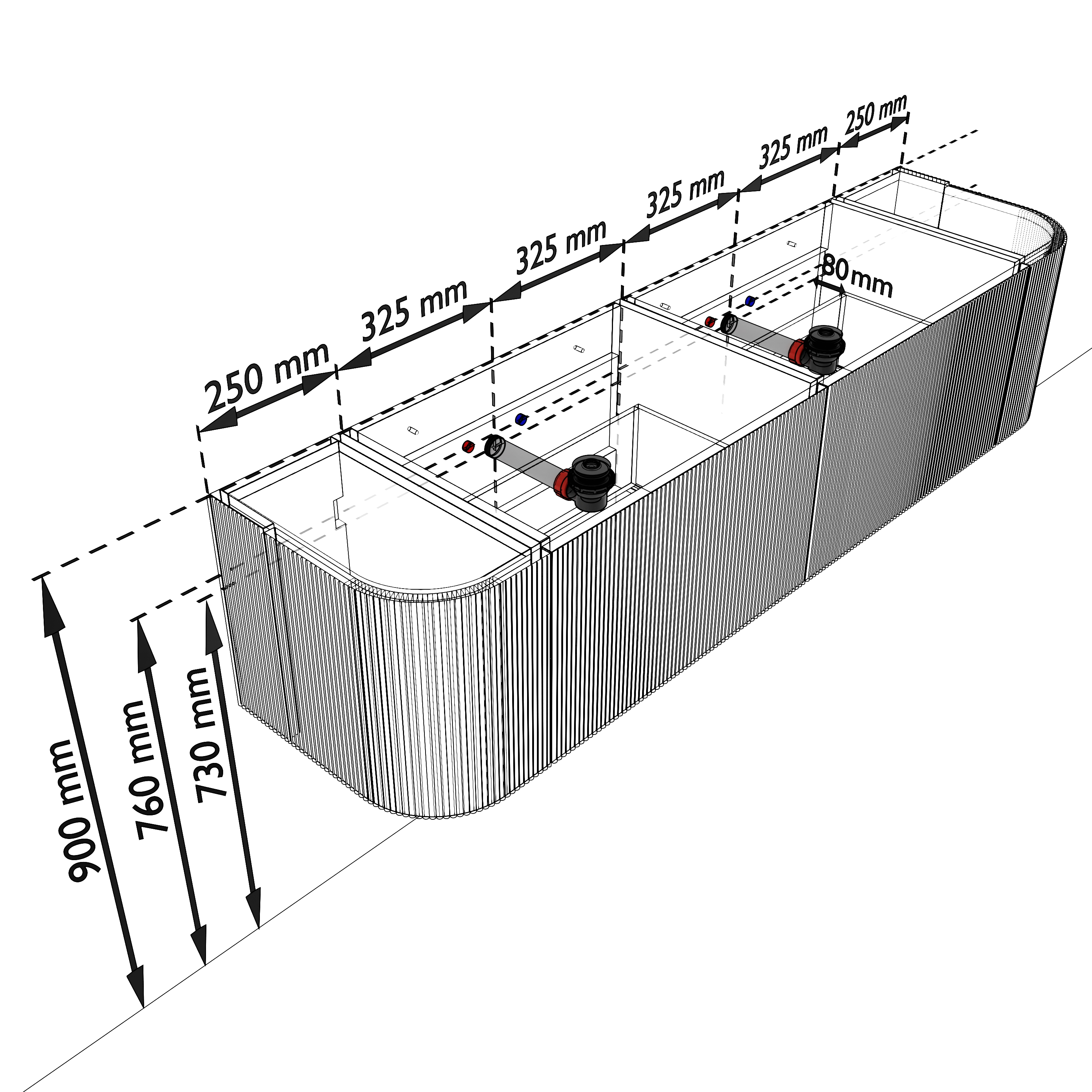 Personaliseer jouw KURVE met verschillende opties: Van een strak design zonder rondingen tot beide afgeronde hoeken, precies zoals jij het wilt. Beschikbaar in diverse maten, van 50cm tot 20cm, als set of op maat gemaakt voor jouw badkamer. Maak een statement met hoogwaardige wastafels in 5 CORIAN Solid Surface marmerkleuren en effen tinten zoals Talc en Urban. De set heeft ook meerdere modellen wastafels, elk met een unieke uitstraling en hoogwaardige afwerking, en laat KURVE jouw perfecte badkamer tot leven brengen.
