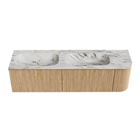 MONDIAZ KURVE-DLUX 165cm badmeubel met module 25 R kleur Oak met 2 lades en 1 deur. Wastafel STOR SMALL dubbel / links zonder kraangat kleur Glace.