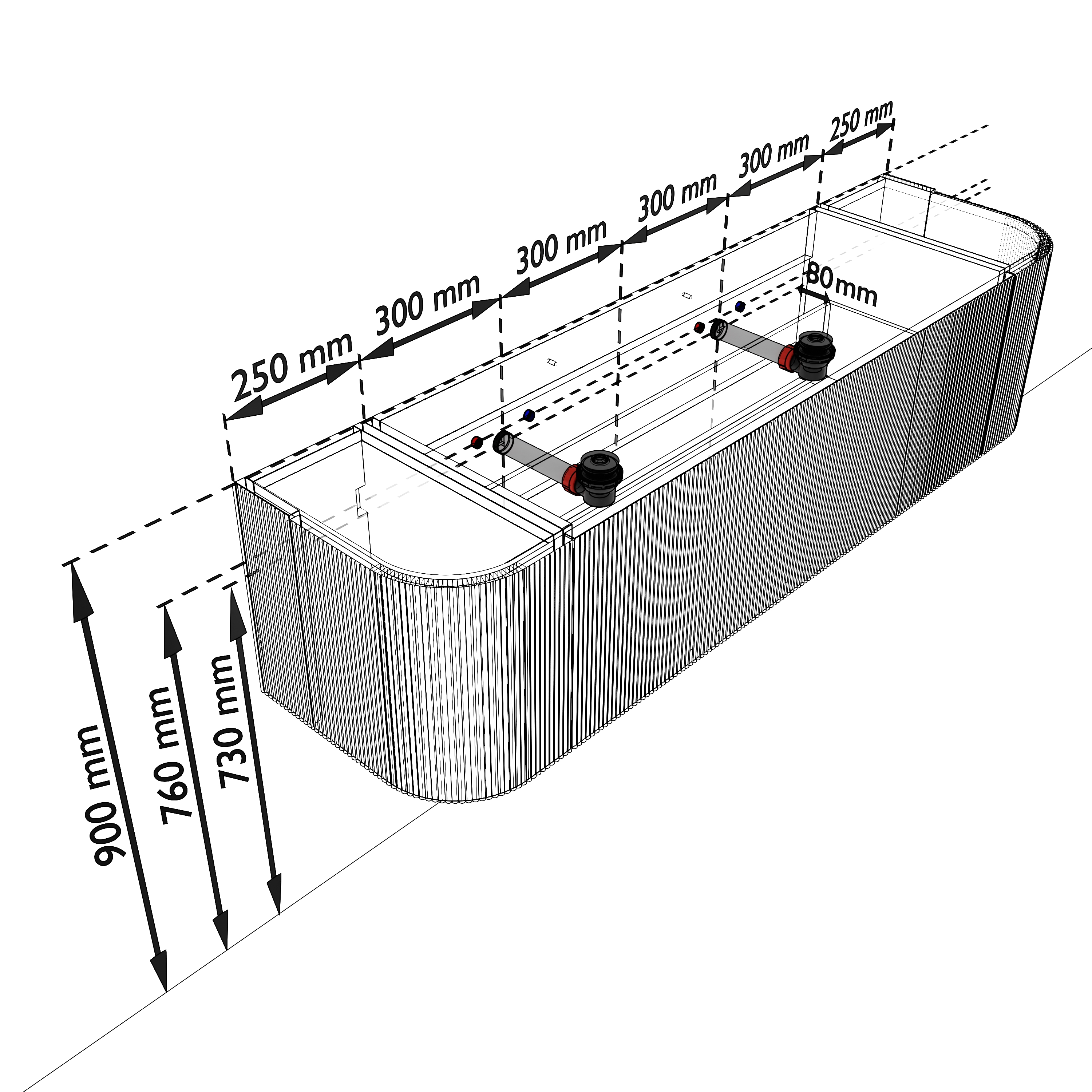 - Geen water langs het meubel loopt.
