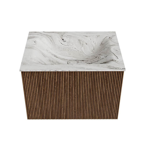 MONDIAZ KURVE-DLUX 60cm badmeubel kleur Walnut met 1 lade. Wastafel CLOUD midden zonder kraangat kleur Glace.