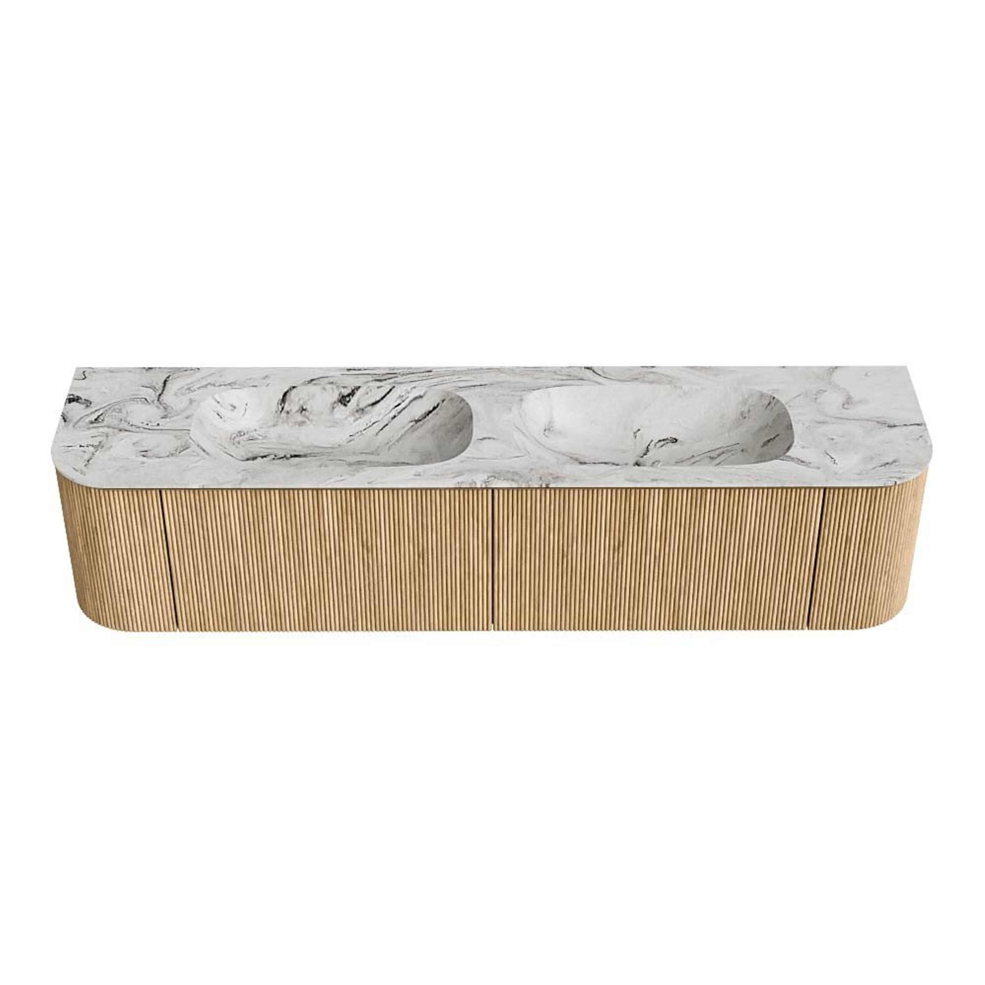 MONDIAZ KURVE-DLUX 190cm badmeubel met module 25 Len R kleur Oak met 2 lades en 2 deuren. Wastafel STOR SMALL dubbel 2 kraangaten kleur Glace.