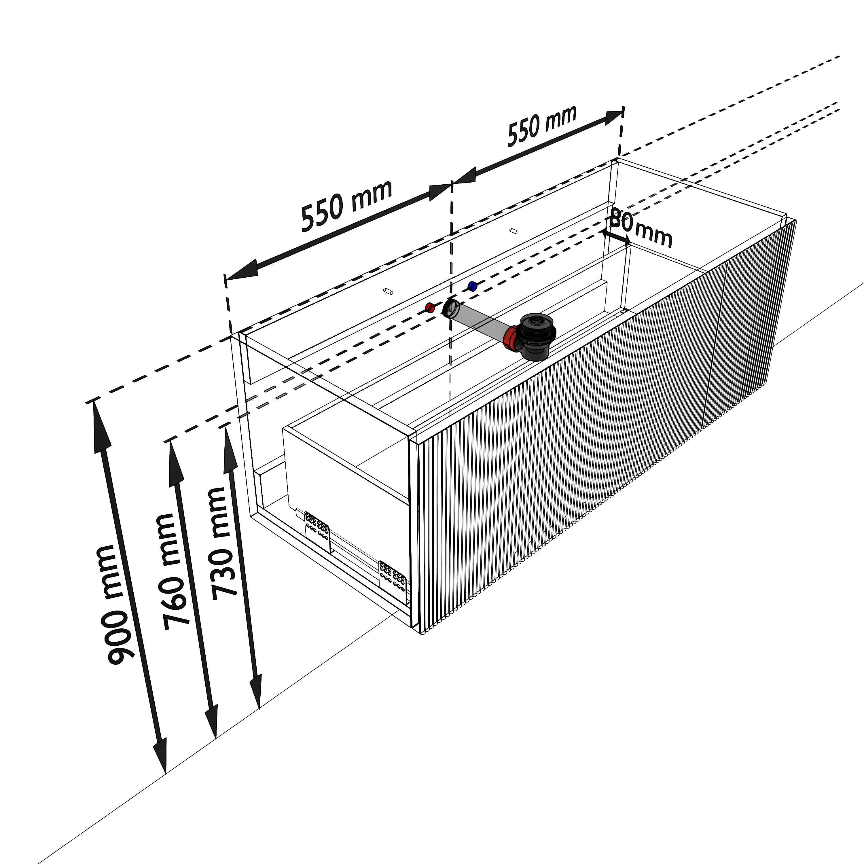 - Geen water langs het meubel loopt.