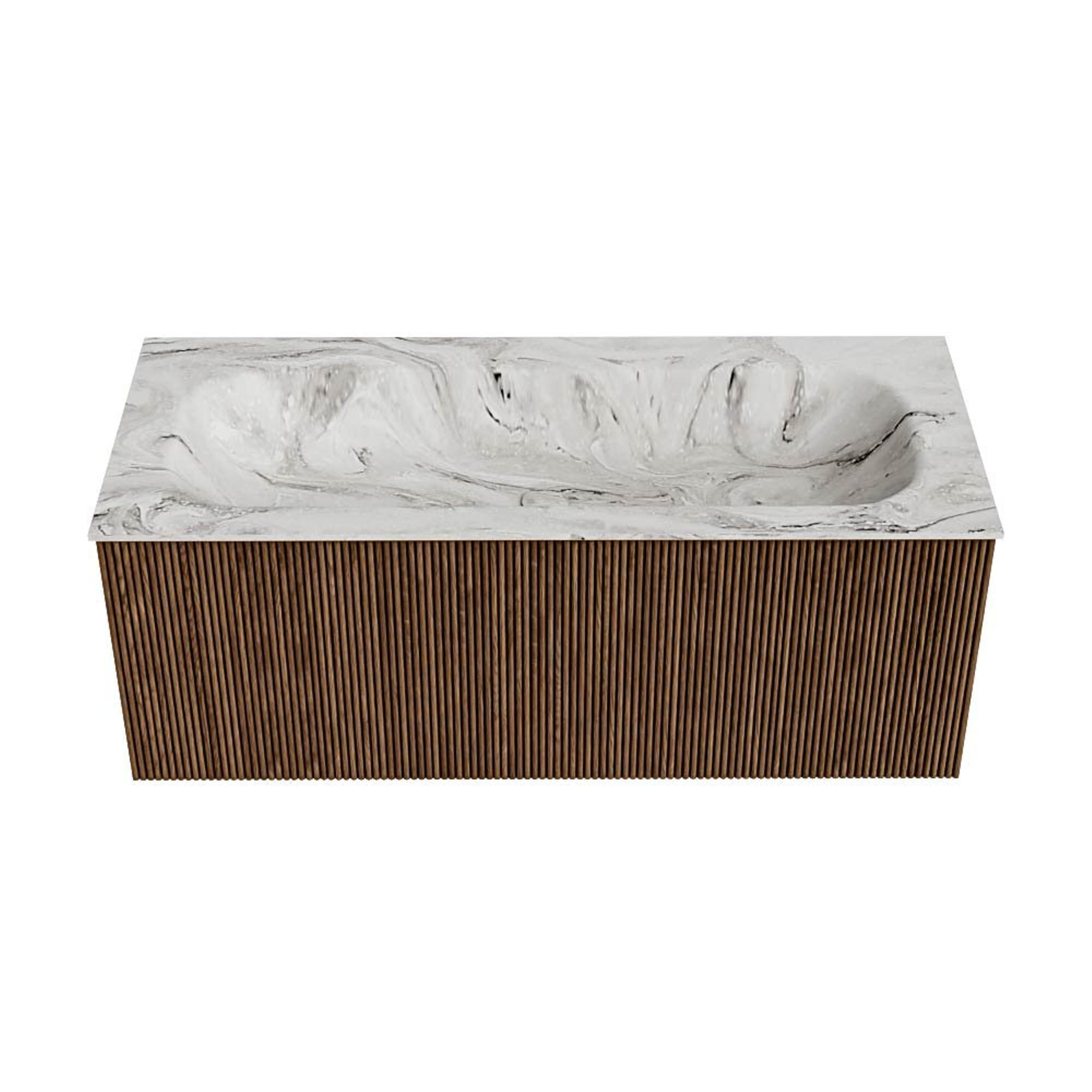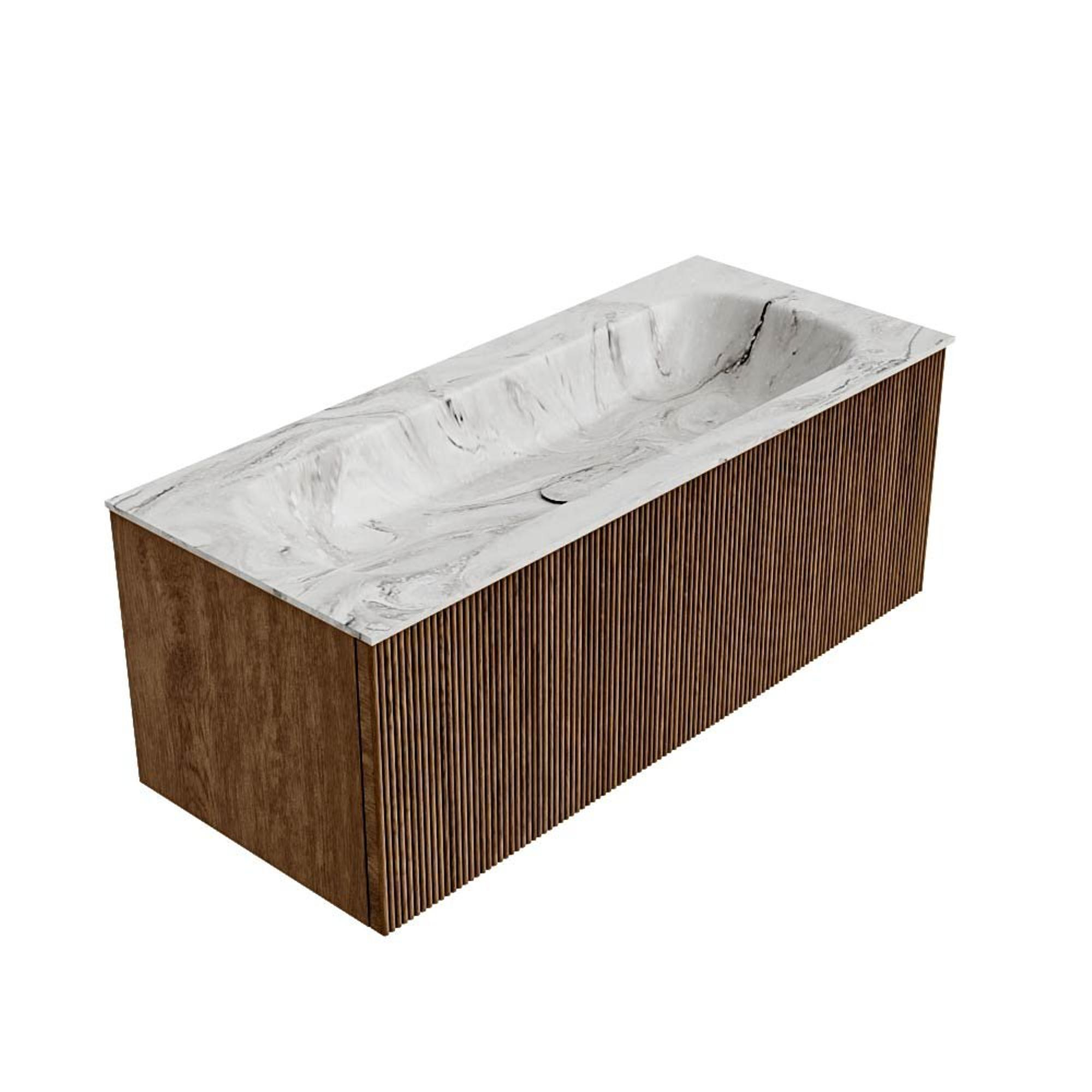 MONDIAZ KURVE-DLUX 110cm badmeubel kleur Walnut met 1 lade. Wastafel BIG MEDIUM midden 1 kraangat kleur Glace.