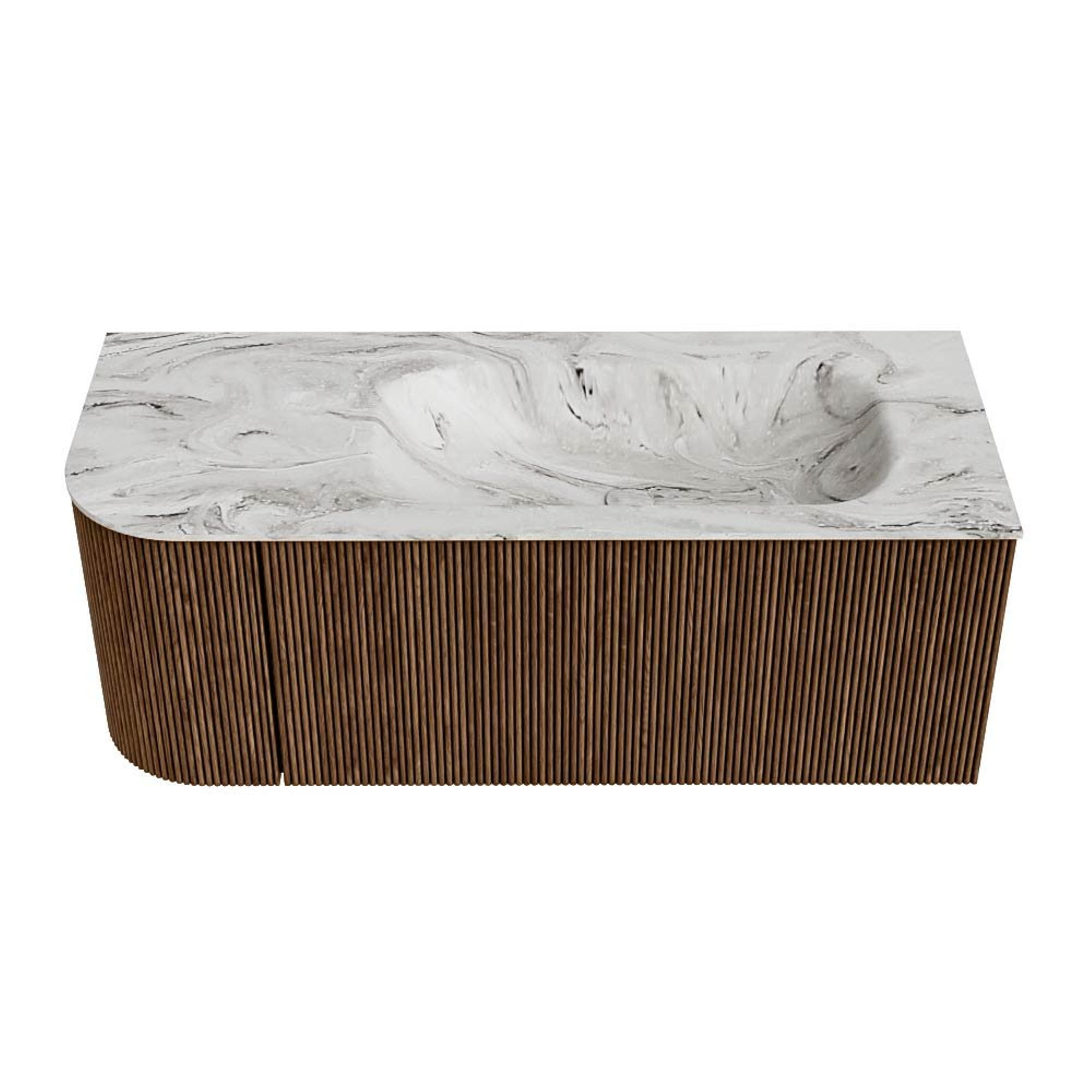 MONDIAZ KURVE-DLUX 115cm badmeubel met module 25 L kleur Walnut met 1 lade en 1 deur. Wastafel BIG SMALL rechts 1 kraangat kleur Glace.