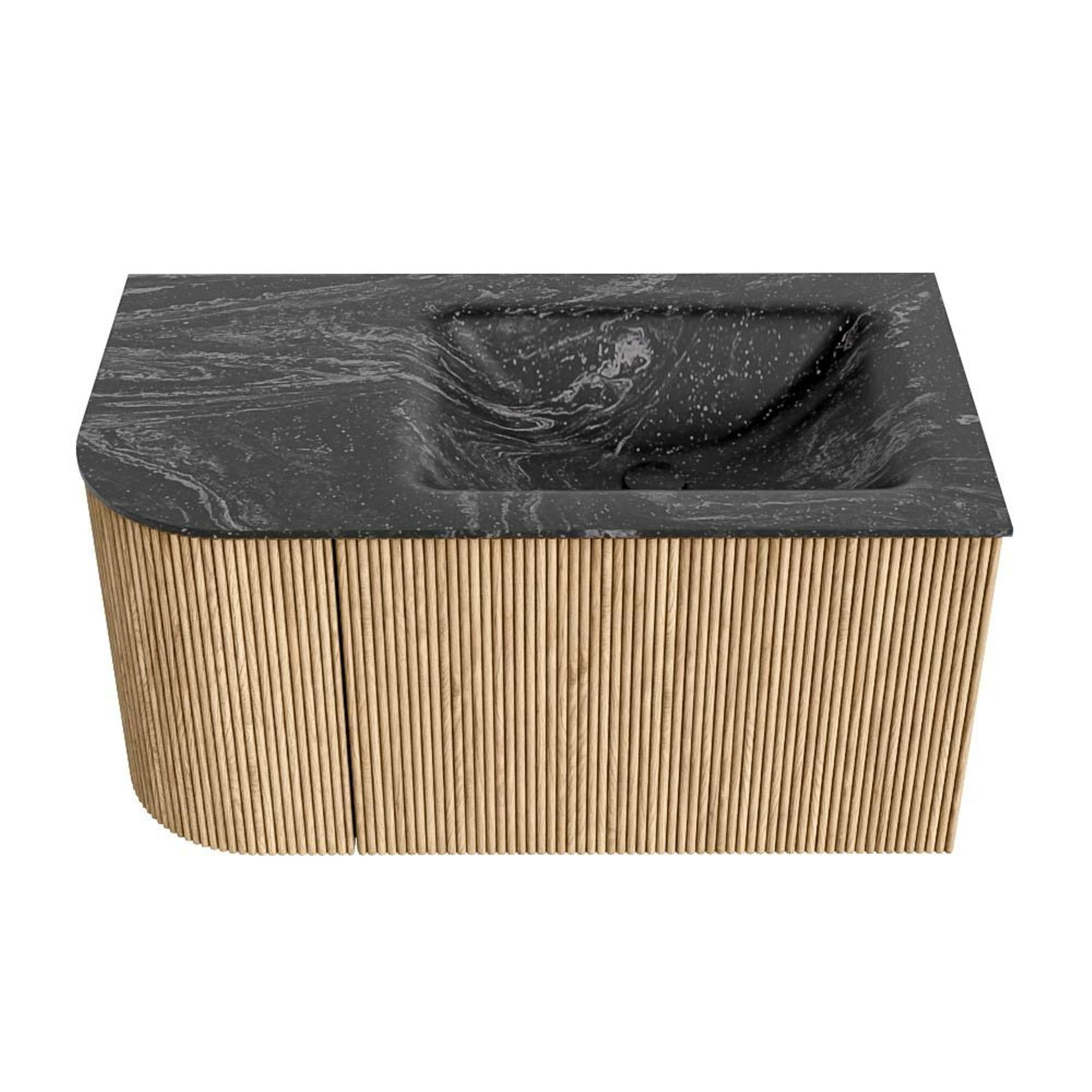 MONDIAZ KURVE-DLUX 85cm badmeubel met module 25 L kleur Oak met 1 lade en 1 deur. Wastafel CLOUD rechts zonder kraangat kleur Lava.