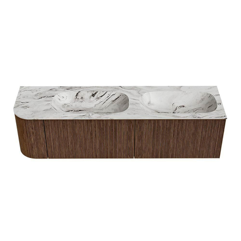 Het ultieme badmeubel dat je badkamer transformeert tot een oase van verfijning. Met zijn halfronde, verticale stroken van massief eiken, verkrijgbaar in de kleuren Oak en Walnut, straalt KURVE vakmanschap uit in elk detail. De zachte rondingen en slim ontworpen deurtjes, elk 40cm hoog, nodigen uit tot gebruik, terwijl de ruimte binnenin optimaal benut wordt dankzij de royale lade van dezelfde hoogte.