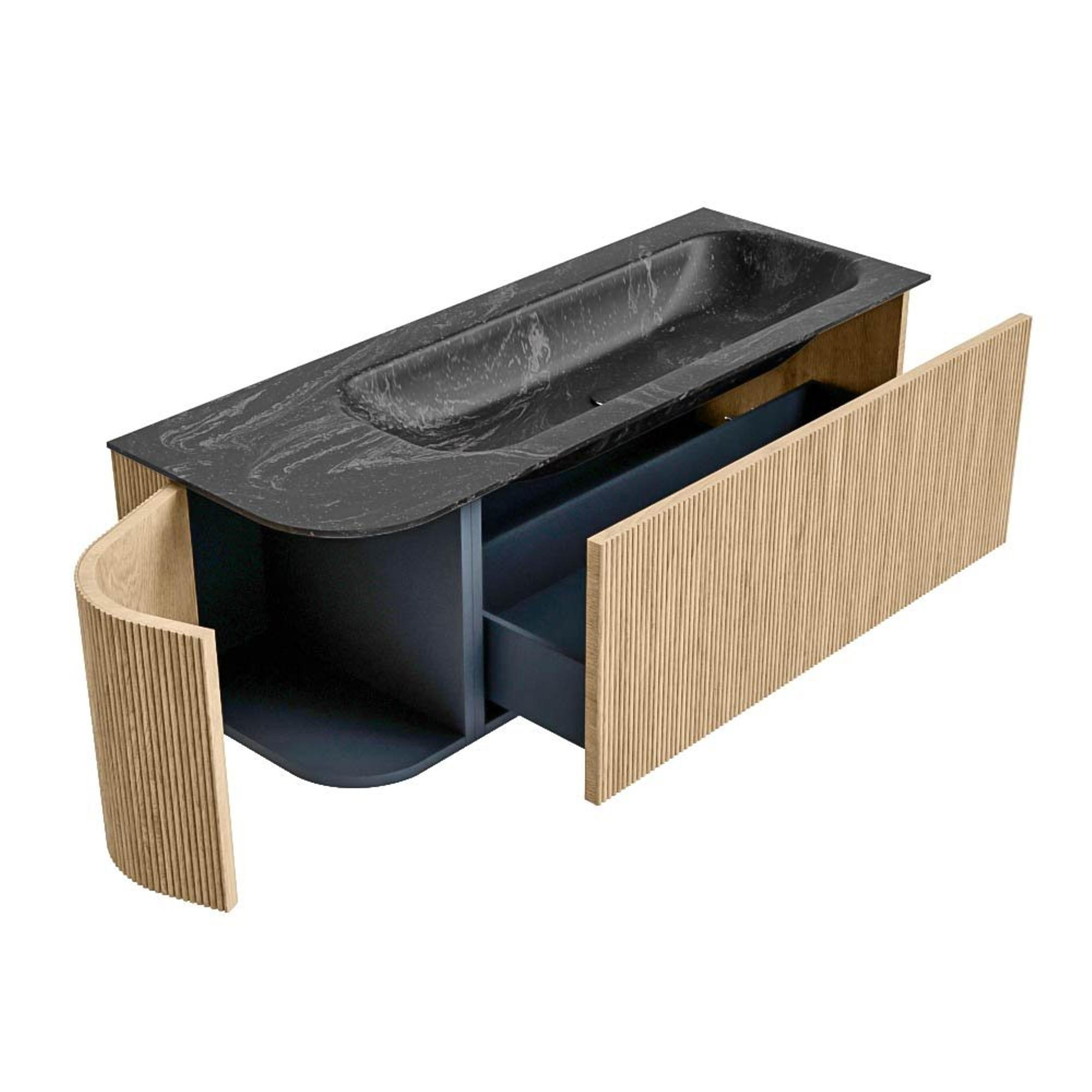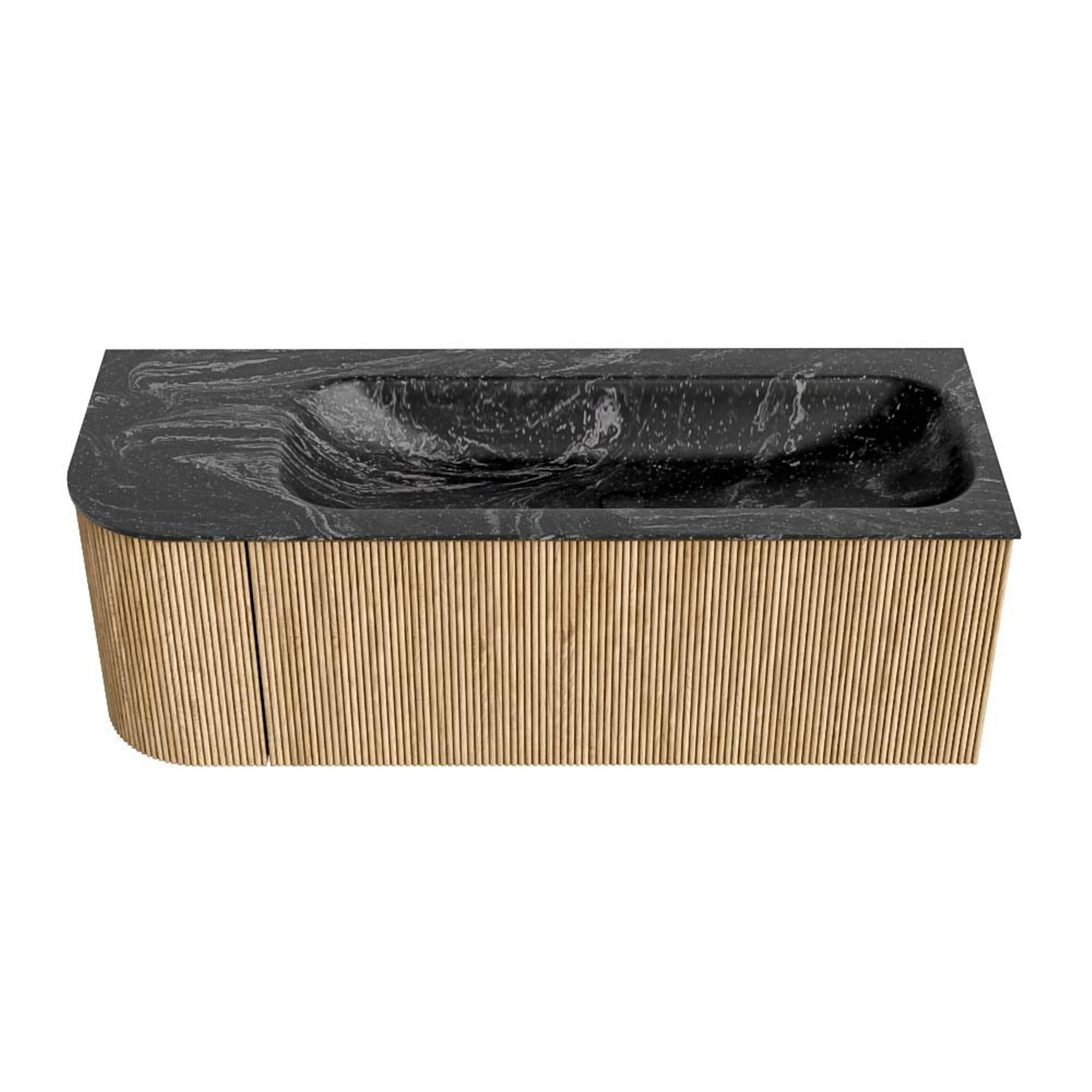 MONDIAZ KURVE-DLUX 125cm badmeubel met module 25 L kleur Oak met 1 lade en 1 deur. Wastafel BIG MEDIUM rechts zonder kraangat kleur Lava.