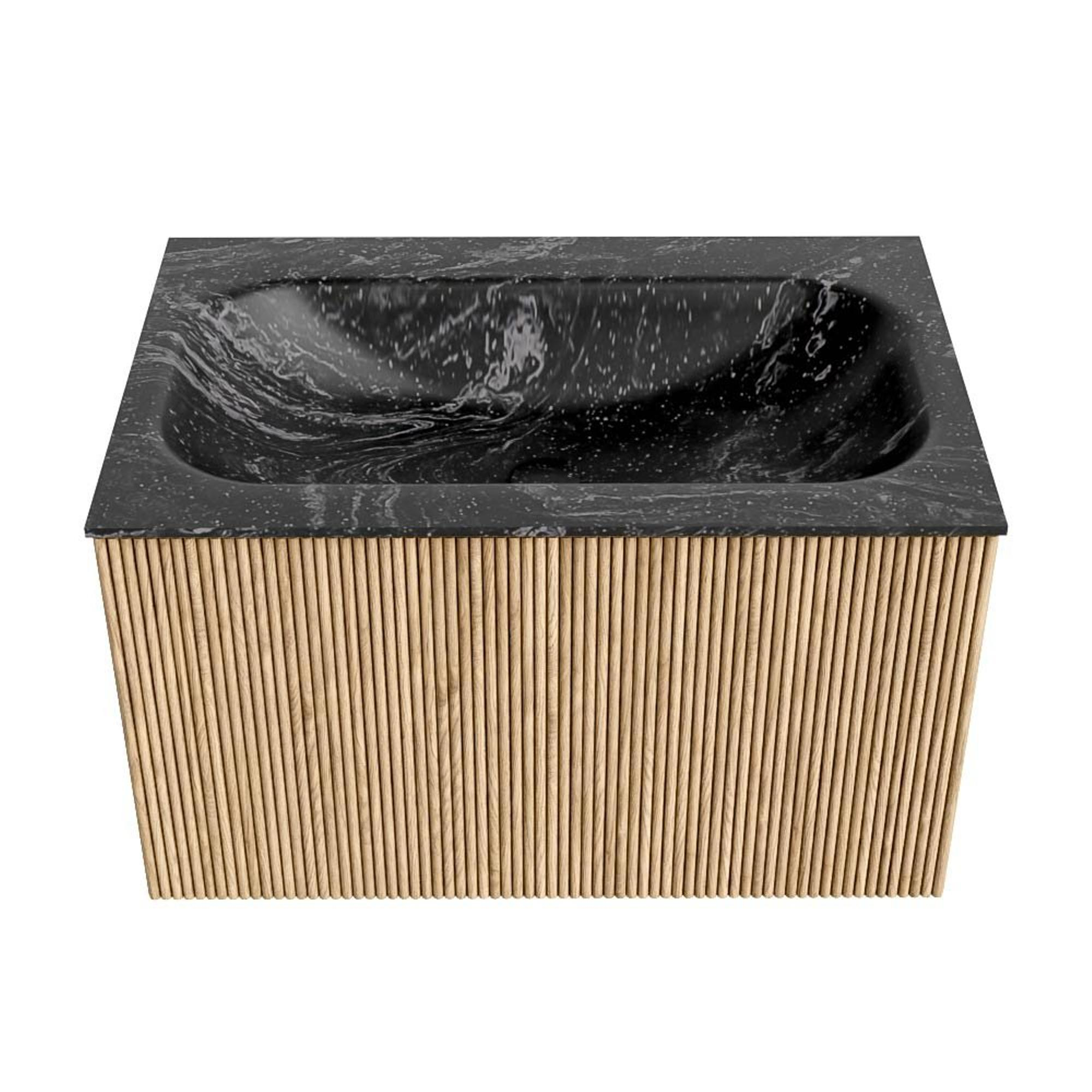 MONDIAZ KURVE-DLUX 70cm badmeubel kleur Oak met 1 lade. Wastafel BIG SMALL midden 1 kraangat kleur Lava.