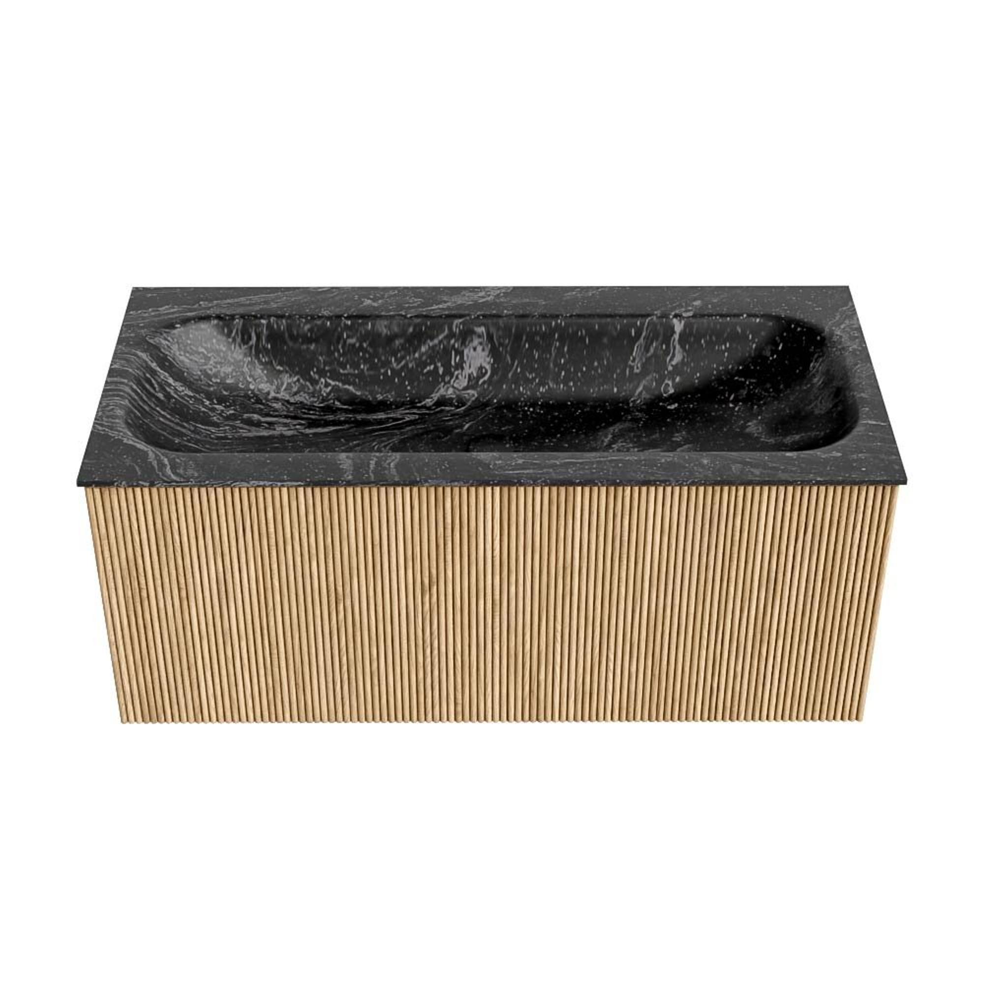 MONDIAZ KURVE-DLUX 100cm badmeubel kleur Oak met 1 lade. Wastafel BIG MEDIUM midden 1 kraangat kleur Lava.