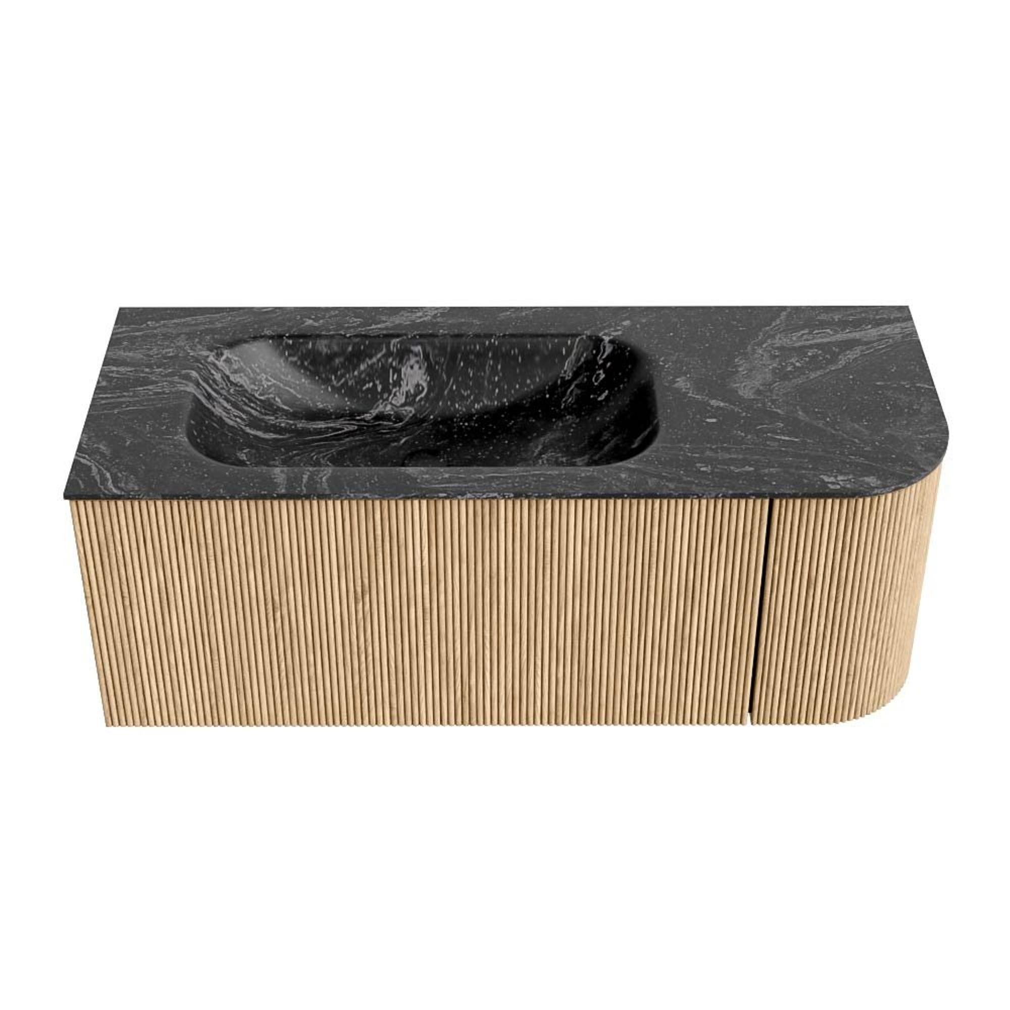 MONDIAZ KURVE-DLUX 115cm badmeubel met module 25 R kleur Oak met 1 lade en 1 deur. Wastafel BIG SMALL links 1 kraangat kleur Lava.