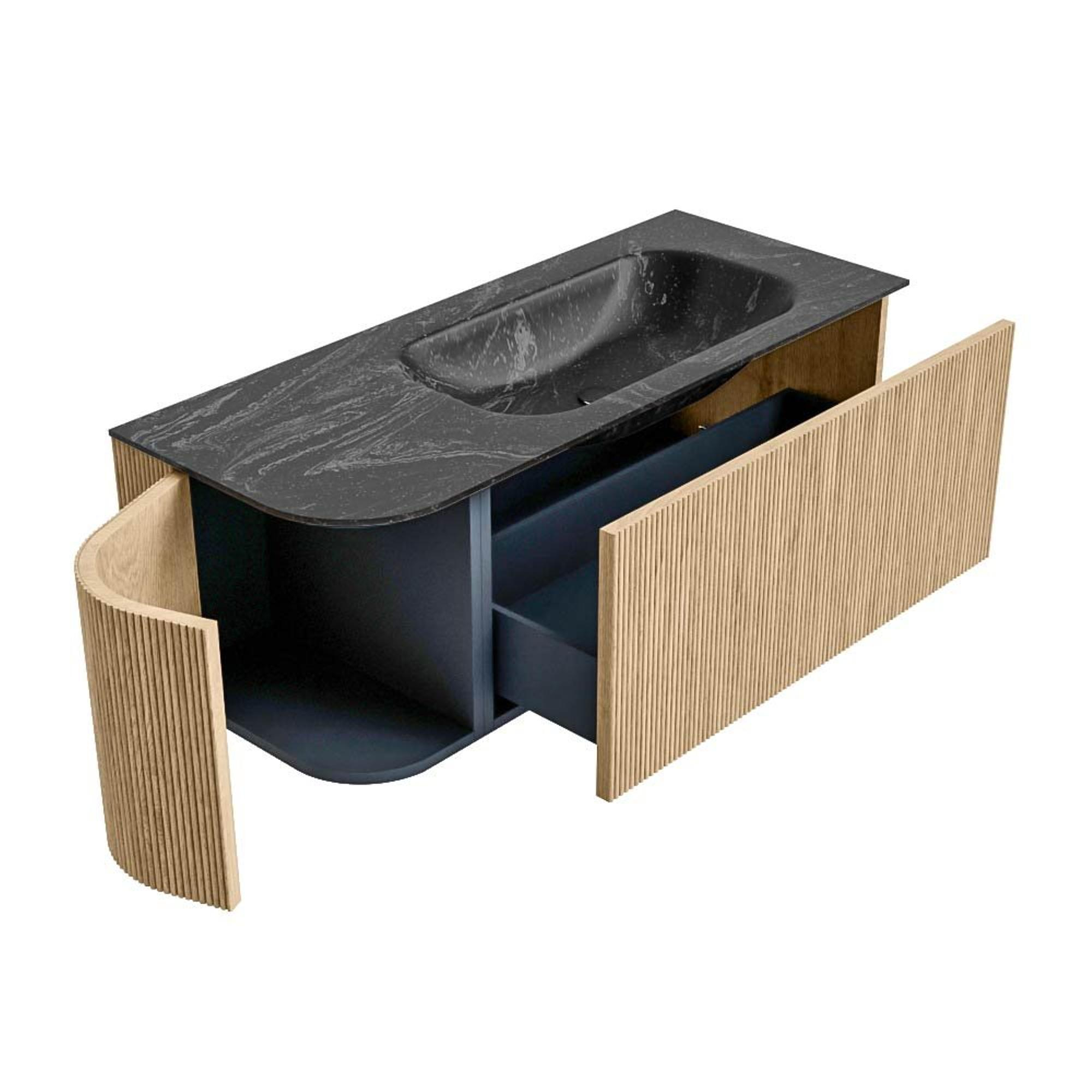 MONDIAZ KURVE-DLUX 115cm badmeubel met module 25 L kleur Oak met 1 lade en 1 deur. Wastafel BIG SMALL rechts zonder kraangat kleur Lava.