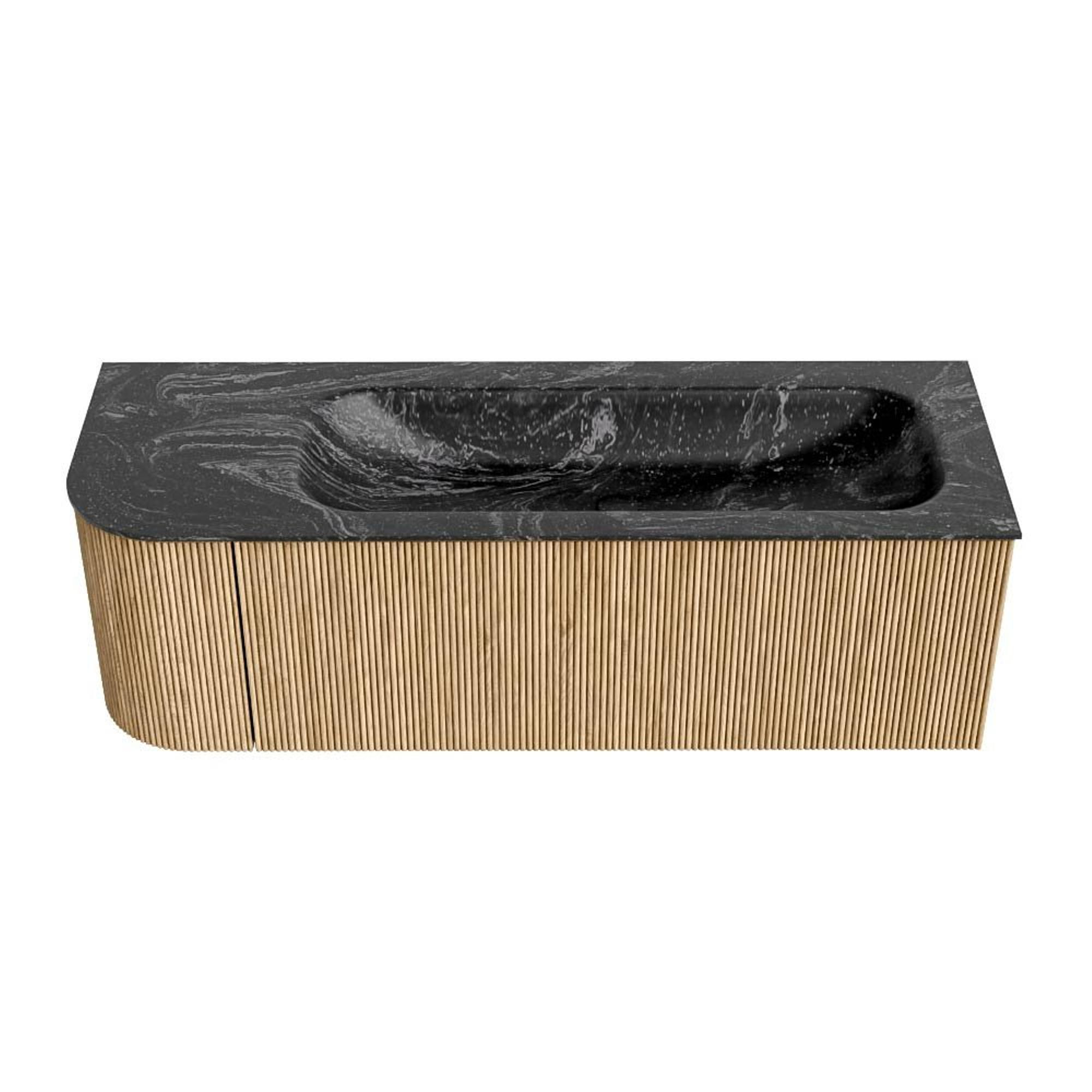 MONDIAZ KURVE-DLUX 135cm badmeubel met module 25 L kleur Oak met 1 lade en 1 deur. Wastafel BIG MEDIUM rechts 1 kraangat kleur Lava.