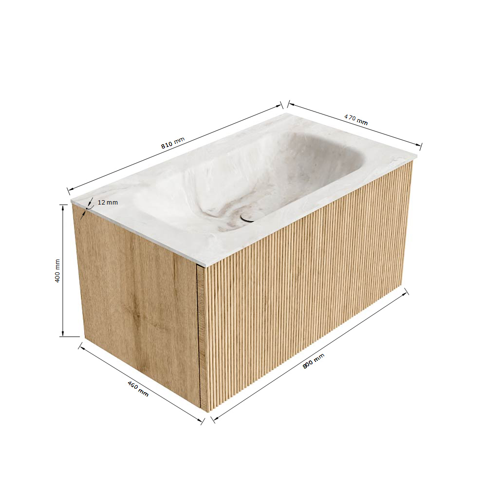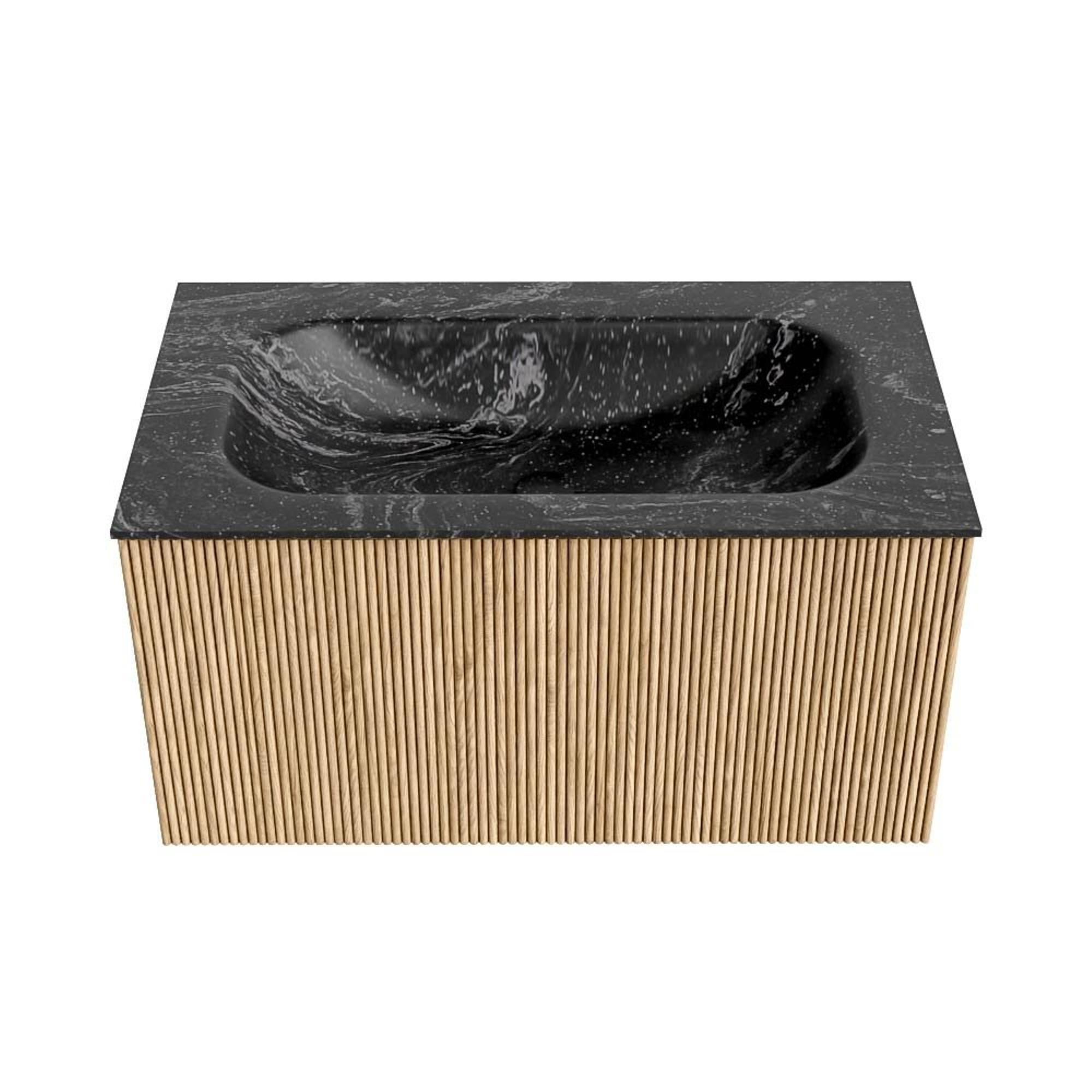 MONDIAZ KURVE-DLUX 80cm badmeubel kleur Oak met 1 lade. Wastafel BIG SMALL midden zonder kraangat kleur Lava.