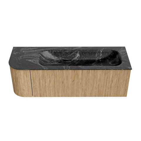 MONDIAZ KURVE-DLUX 135cm badmeubel met module 25 L kleur Oak met 1 lade en 1 deur. Wastafel BIG MEDIUM rechts zonder kraangat kleur Lava.