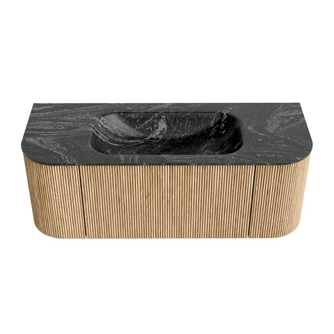 MONDIAZ KURVE-DLUX 120cm badmeubel met module 25 Len R kleur Oak met 1 lade en 2 deuren. Wastafel BIG SMALL midden 1 kraangat kleur Lava.