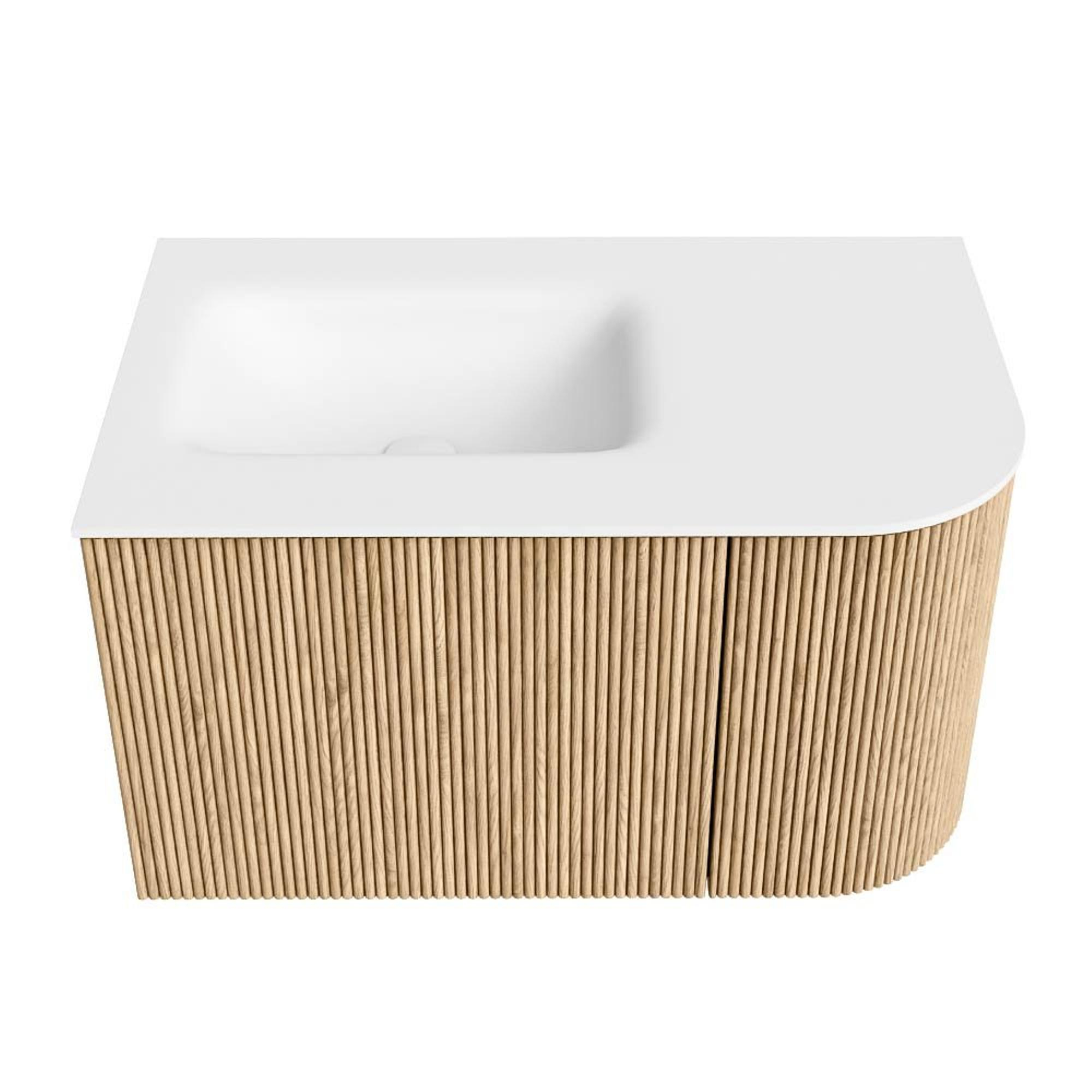 MONDIAZ KURVE 75cm badmeubel met module 25 R kleur Oak met 1 lade en 1 deur. Wastafel GRUNNE links 1 kraangat Talc.
