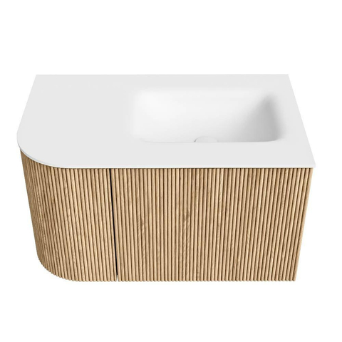 MONDIAZ KURVE 75cm badmeubel met module 25 L kleur Oak met 1 lade en 1 deur. Wastafel GRUNNE rechts 1 kraangat Talc.