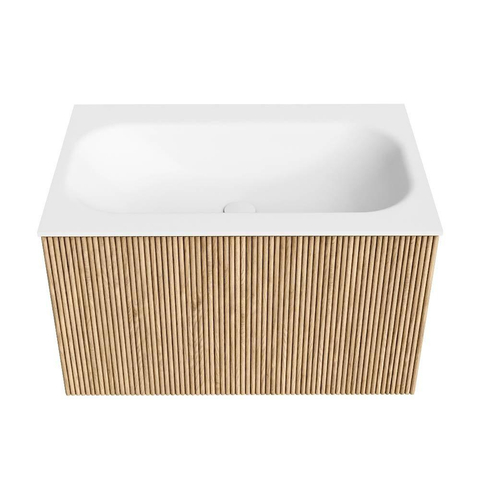 MONDIAZ KURVE 70cm badmeubel kleur Oak met 1 lade. Wastafel BIG SMALL midden zonder kraangat Talc.