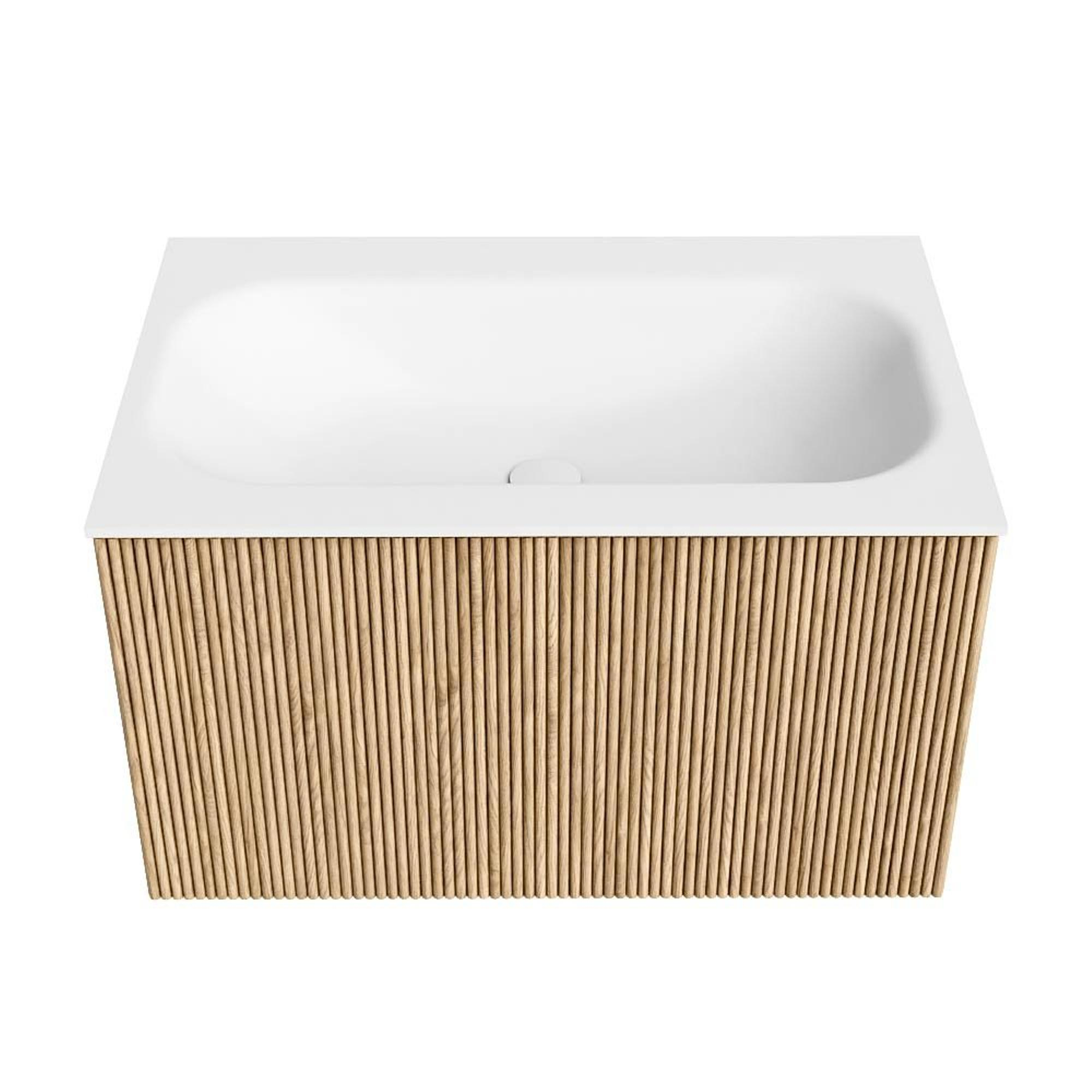MONDIAZ KURVE 70cm badmeubel kleur Oak met 1 lade. Wastafel BIG SMALL midden 1 kraangat Talc.