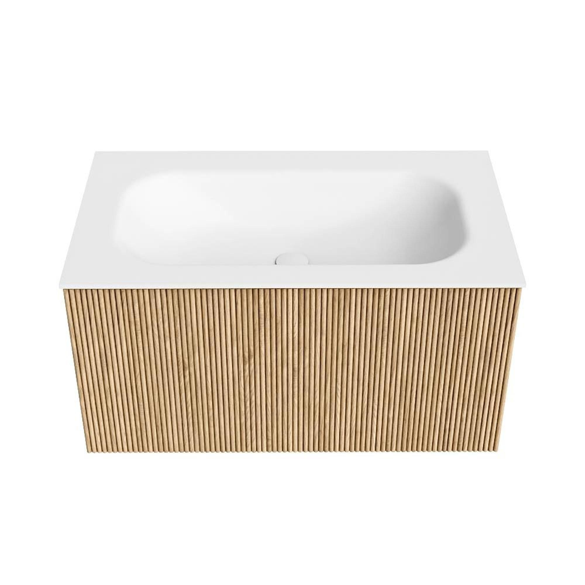 MONDIAZ KURVE 80cm badmeubel kleur Oak met 1 lade. Wastafel BIG SMALL midden zonder kraangat Talc.