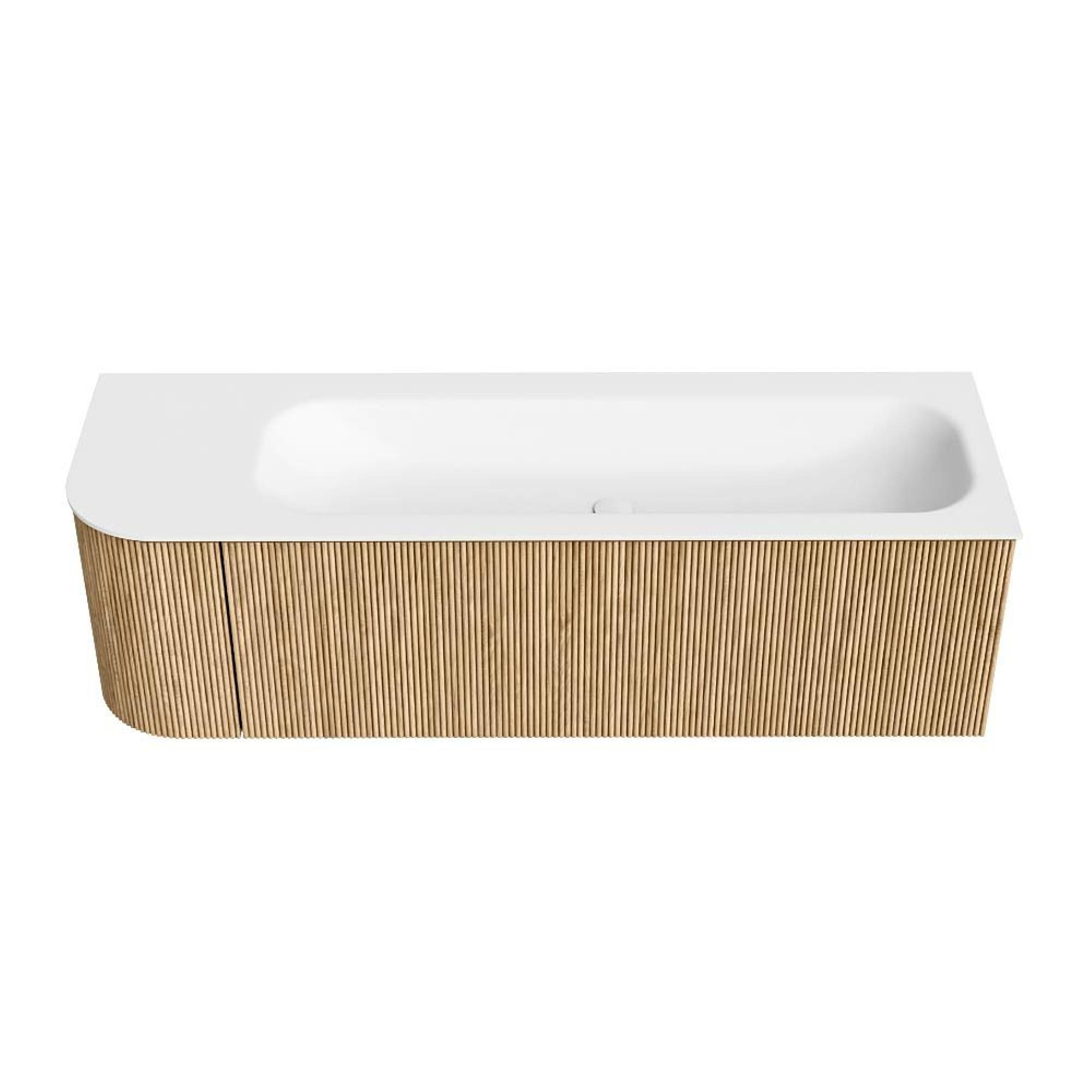 MONDIAZ KURVE 145cm badmeubel met module 25 L kleur Oak met 1 lade en 1 deur. Wastafel BIG LARGE rechts 1 kraangat Talc.